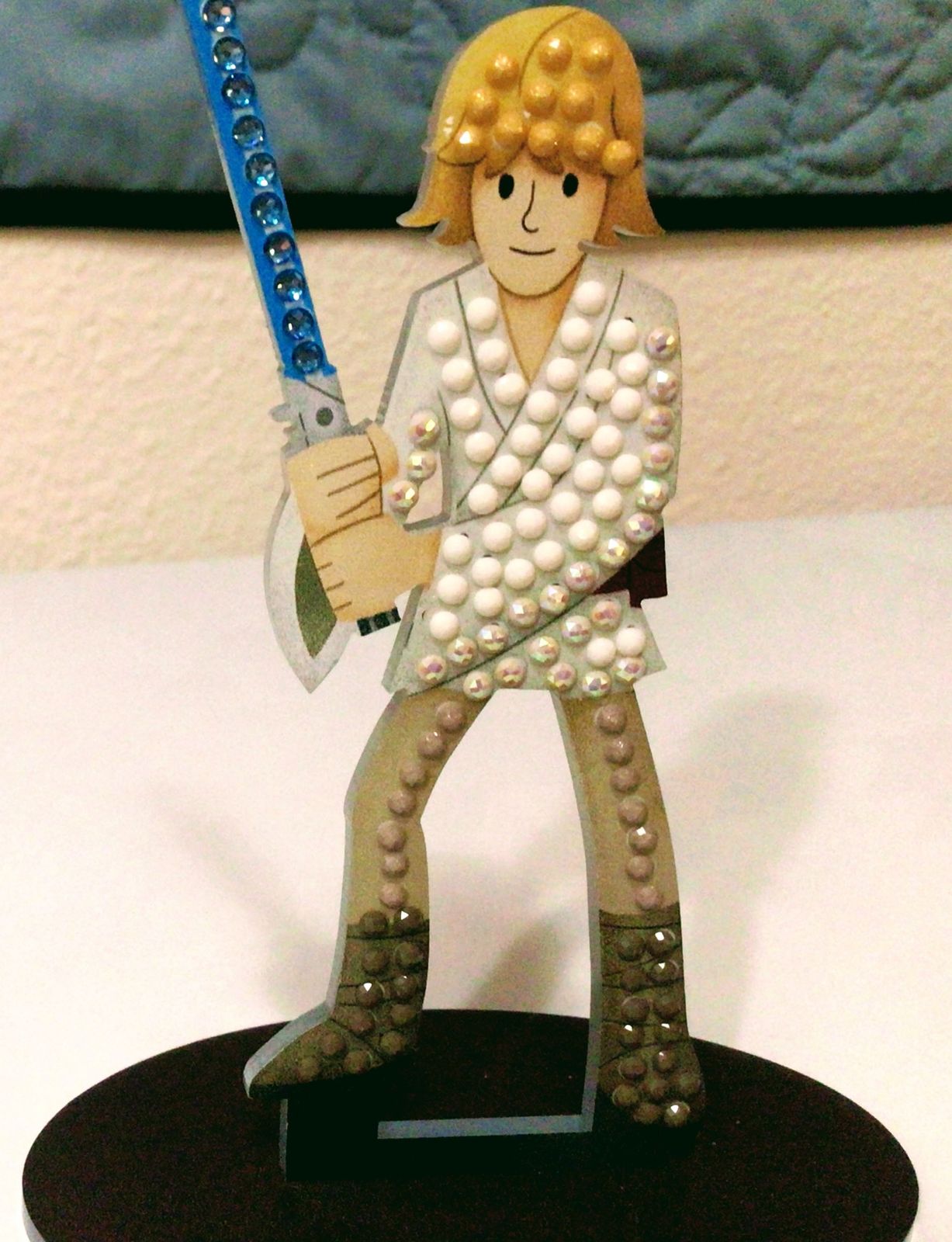 How cute is this little Luke Skywalker! This is my first purchase, and I’m delighted. It’s a quick project, suitable for any age. The figure locks into the stand firmly so he stands up just fine.