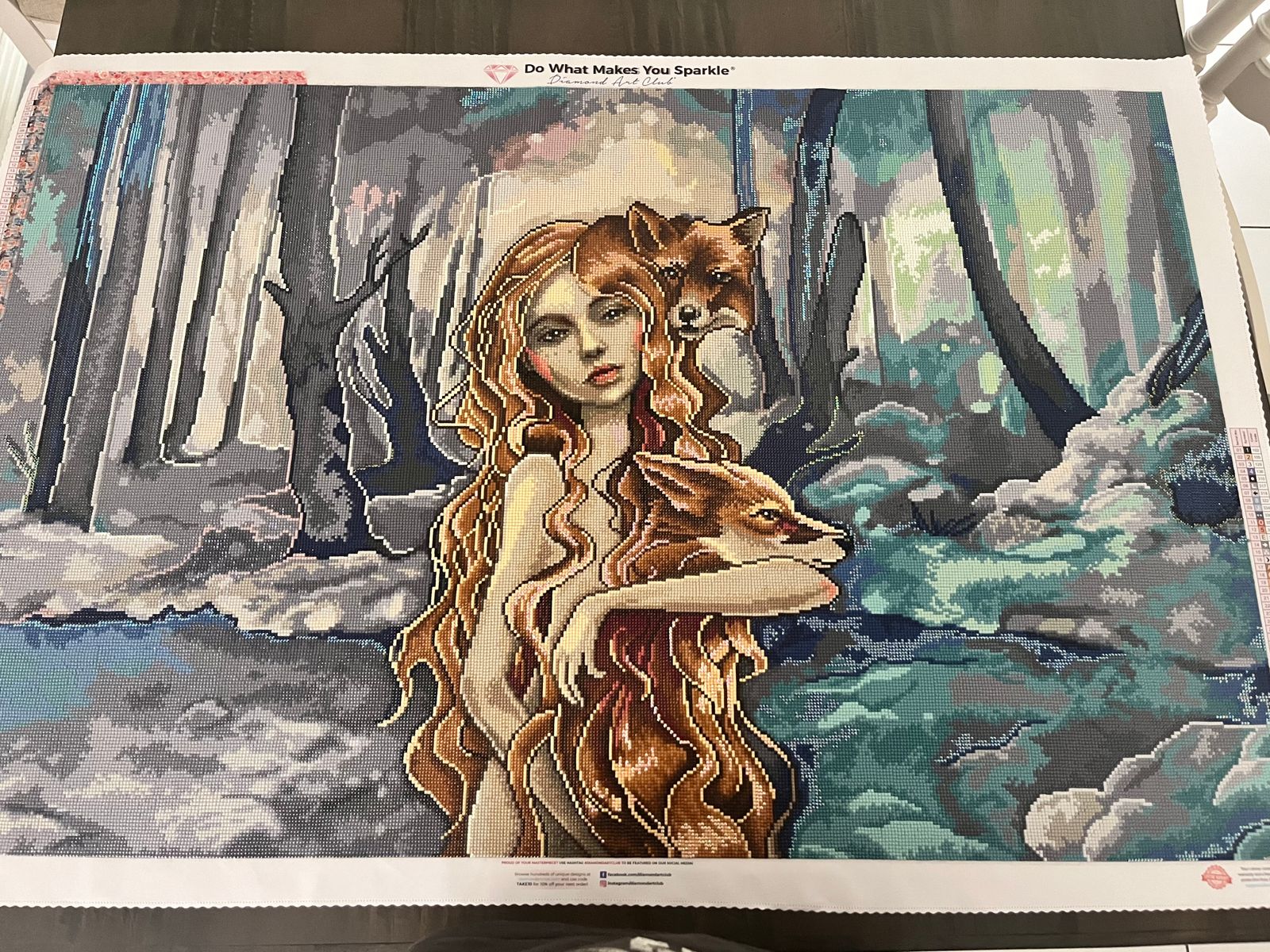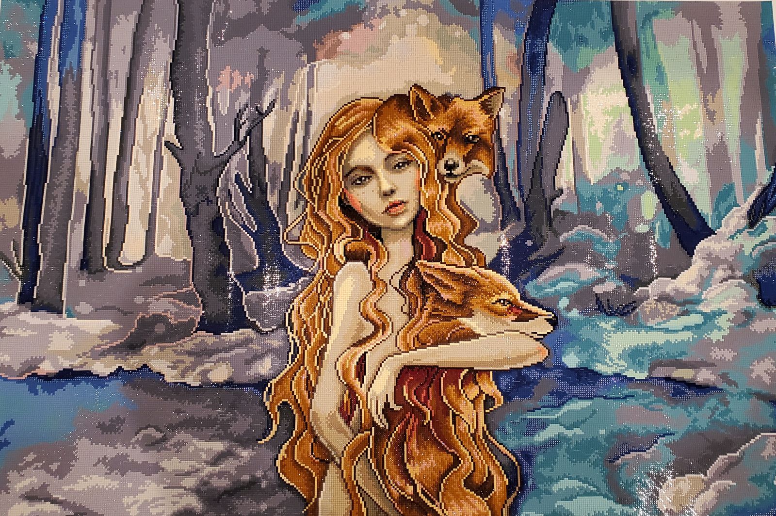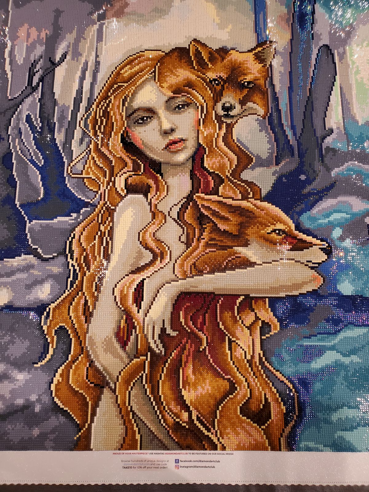 Absolutely stunning canvas with beautiful colors and sparkling drills. It took some time to complete due to how large it is, however, the process as well as the result were well worth it. I'm in love with how it turned out.