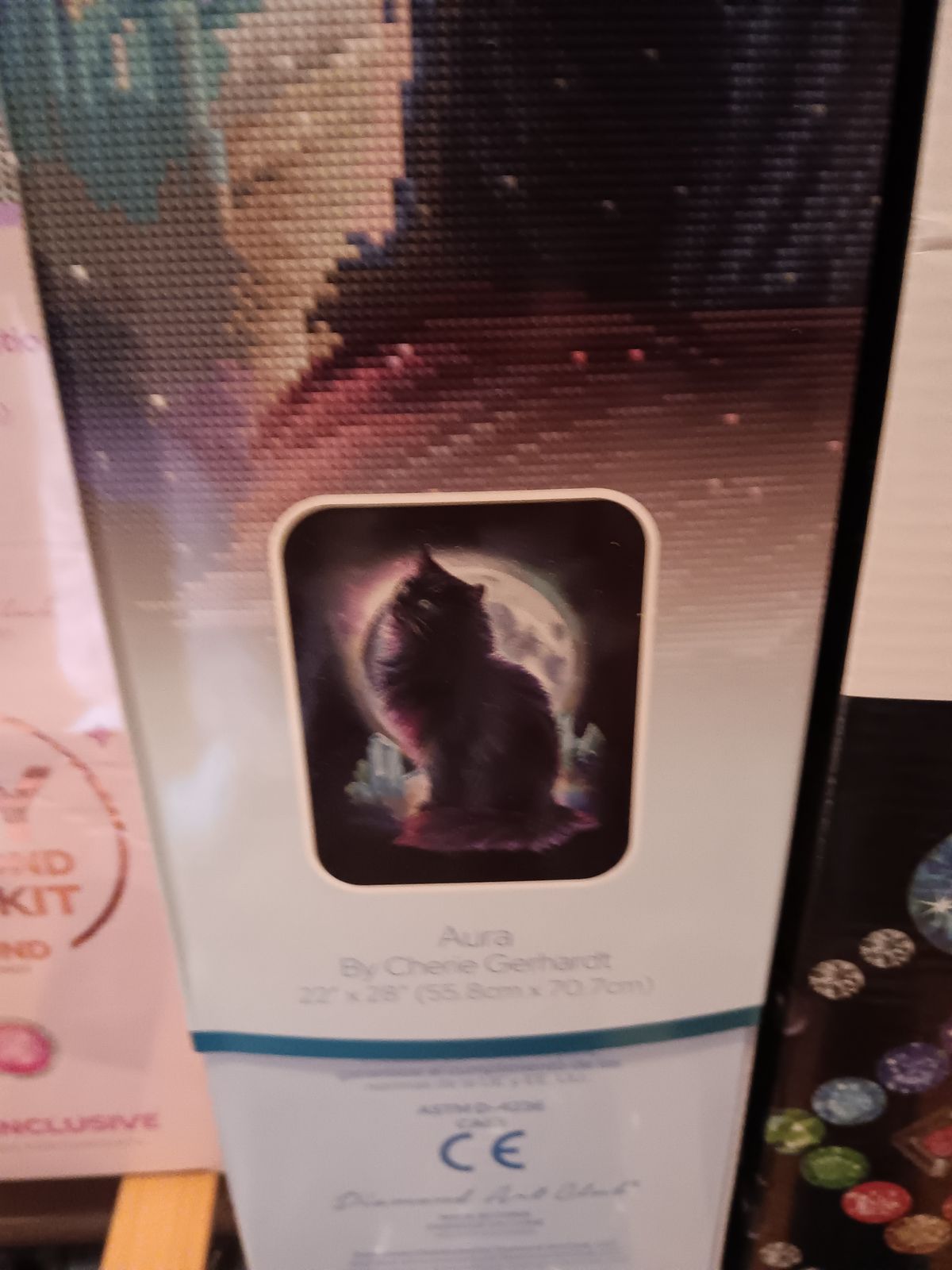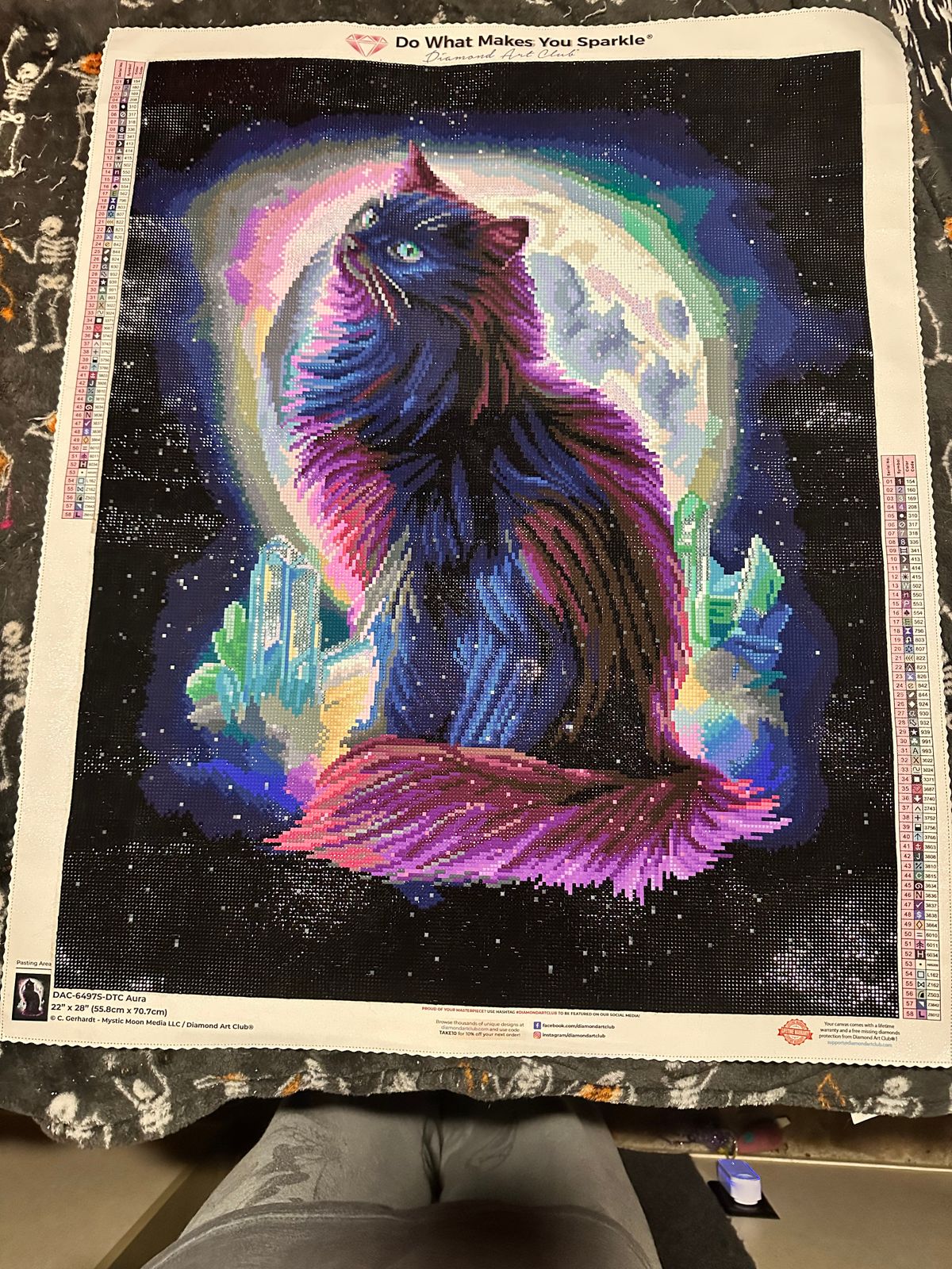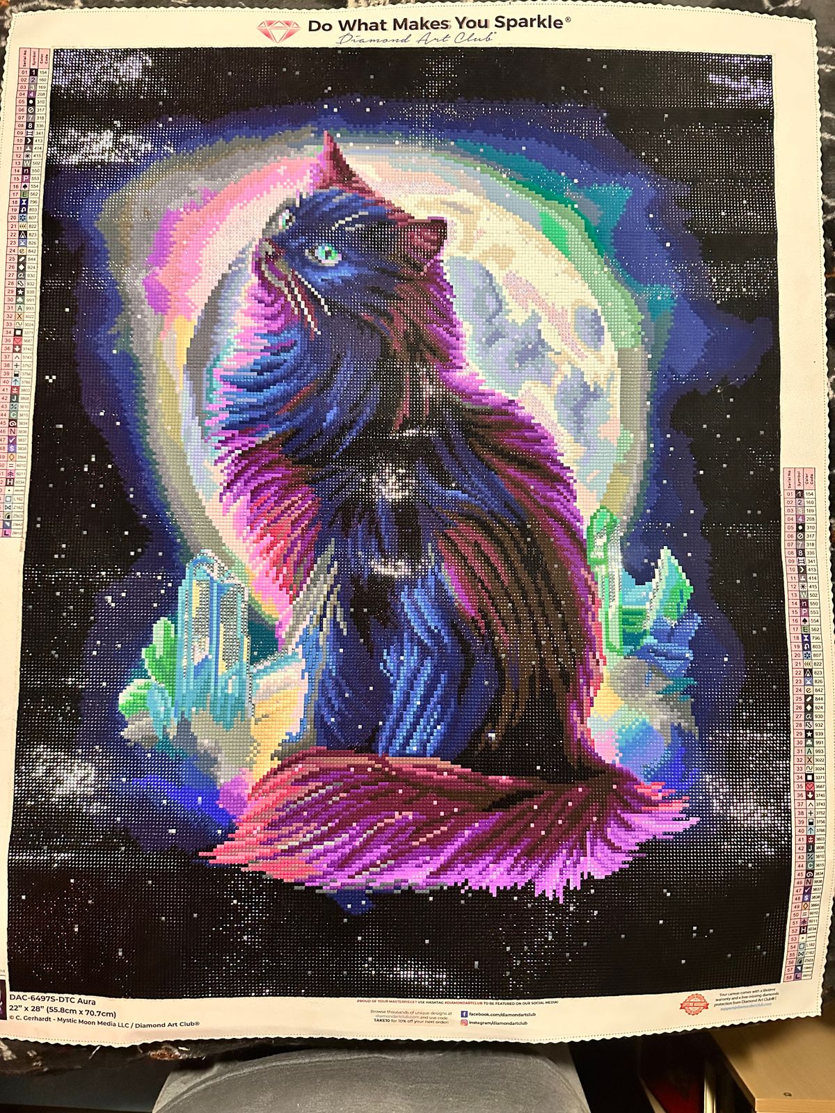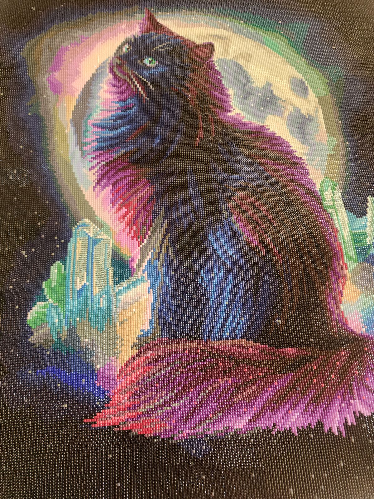 I love this canvas, the kitty looks just like one of my fur kids!! The pictures do not do it justice, the iridescent diamonds are really sparkly!!