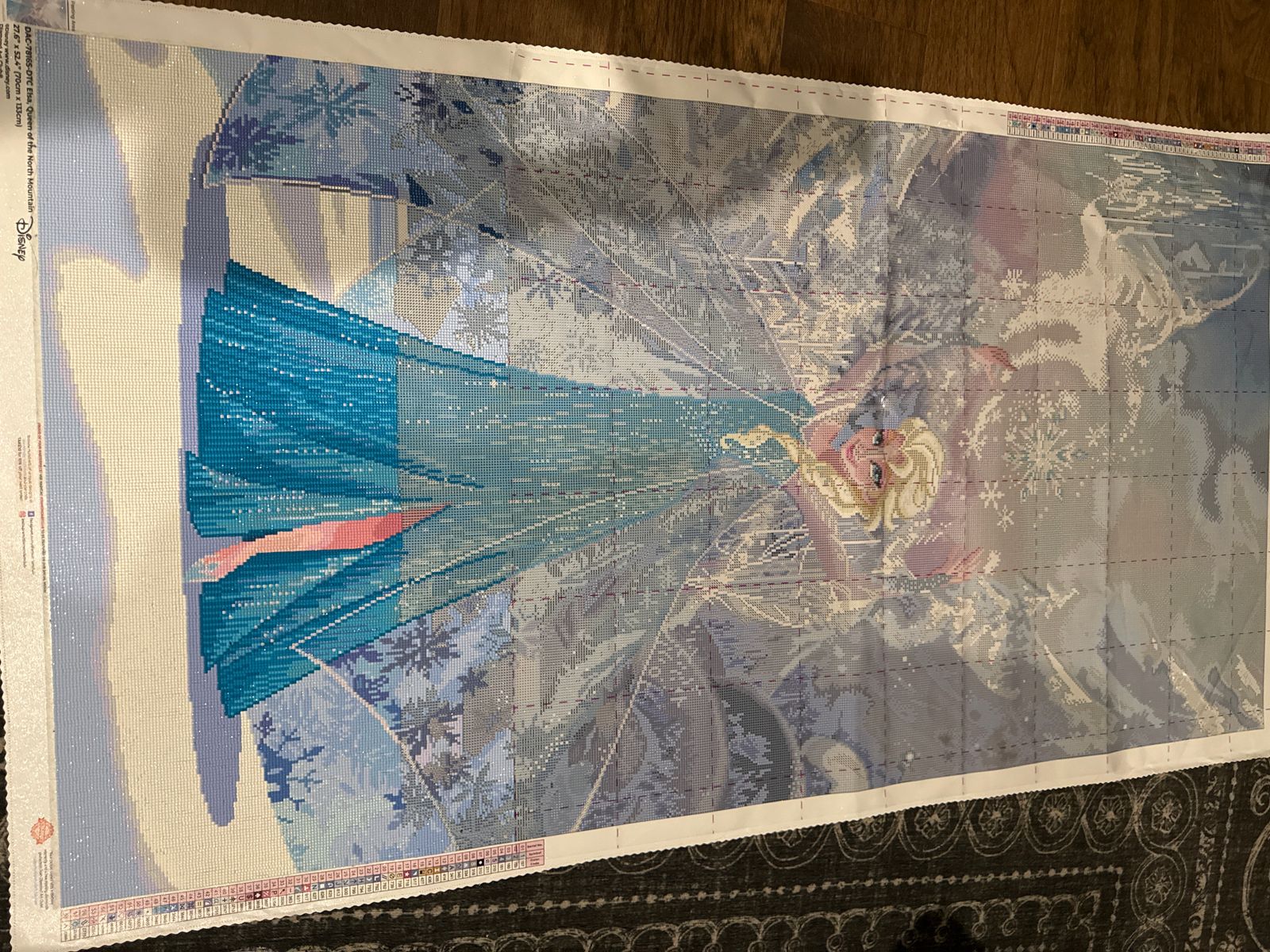 This was a good mix of confetti and color blocking. There were a lot of special drills, the canvas is super sparkly. Elsa dress was almost 50% ABs. I did a lot of hand placing with tweezers.