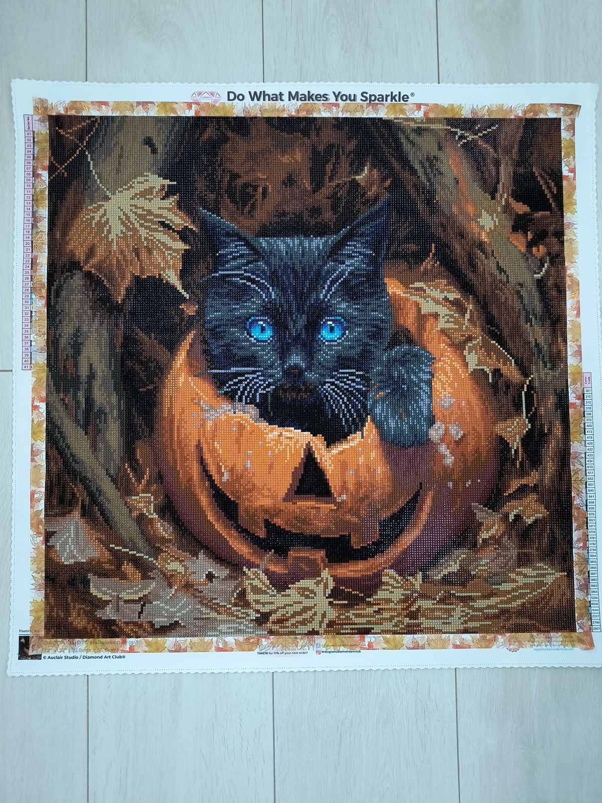 I did this for Drills and Chills 2025. I enjoyed working on this painting. I am still new at diamond painting, but I find DAC drills nice to work with. The shine on them are beautiful. There is a balanced of confetti and color blocking, so you can use your multi-placer if you want.