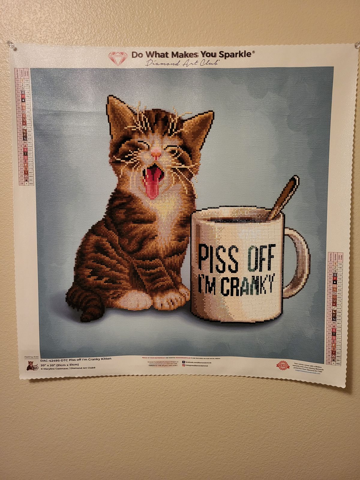 This is the first painting I have done that is not full drill and I loved doing it. Not only was it faster but the design really pops out. It was also pretty evenly spread between color block and confetti. Total joy to work on.