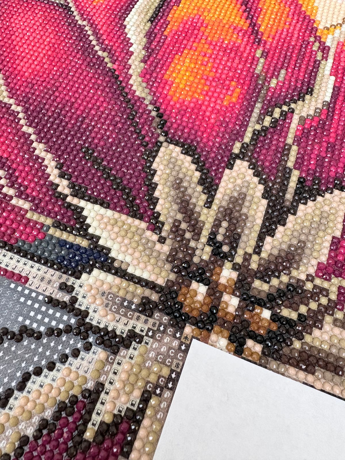 Stunning piece. The colours are vibrant and perfect for Christmas here in Australia. I have my own accessories, bulit up over years of diamond art painting, but appreciate the starter kit included.
