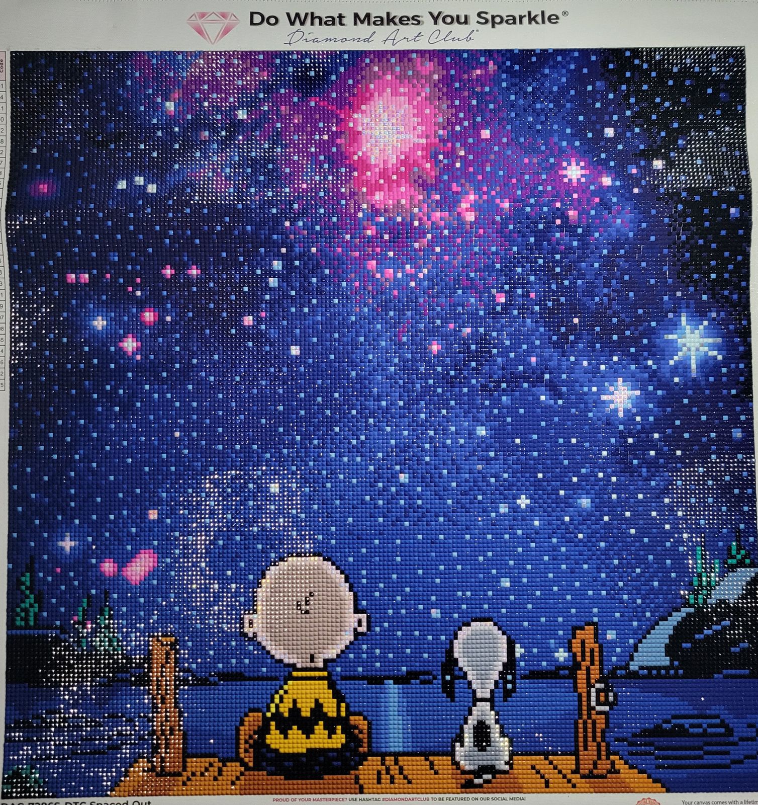 This is so shiny, it *gleams*. Admittedly I got tired of all the blues and black, but by the time I worked down to Charlie Brown and Snoopy, it was worth it! Everyone who's seen it says how sparkly it is, and two fellow DPs said, "Quality sure makes a difference". The way the square drills fit together makes it glisten. It worked up fairly fast too. I highly recommend this one.