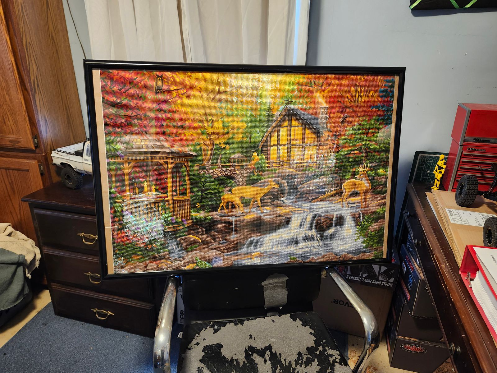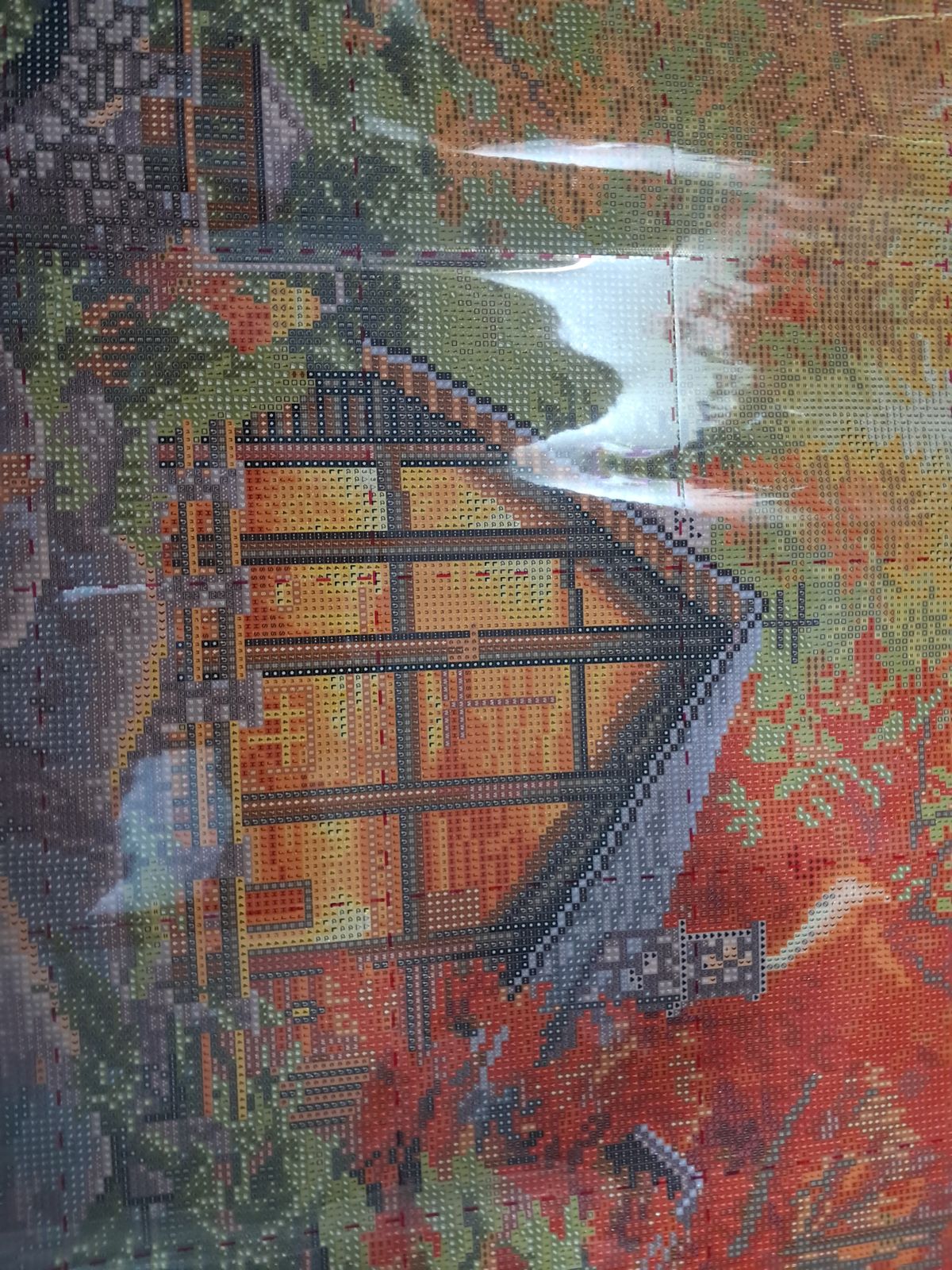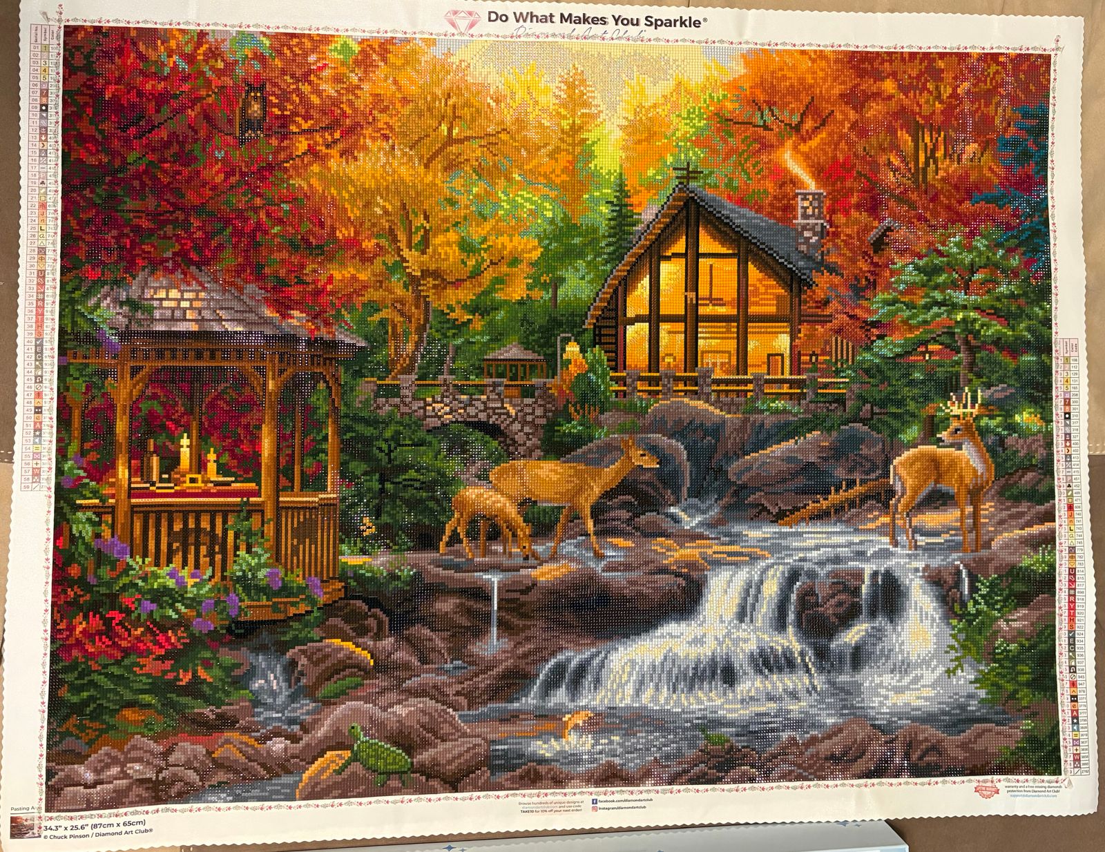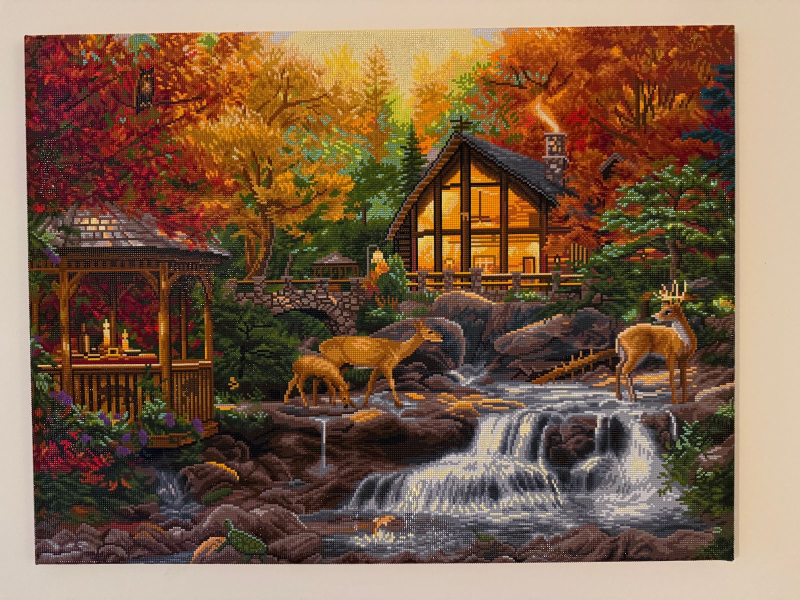 This was my first landscape and first square diamond painting and I think it came out really well. I never got bored because there was always a new element to work on as I went. The trees were a lot of fun to do with all of their fall colors too!