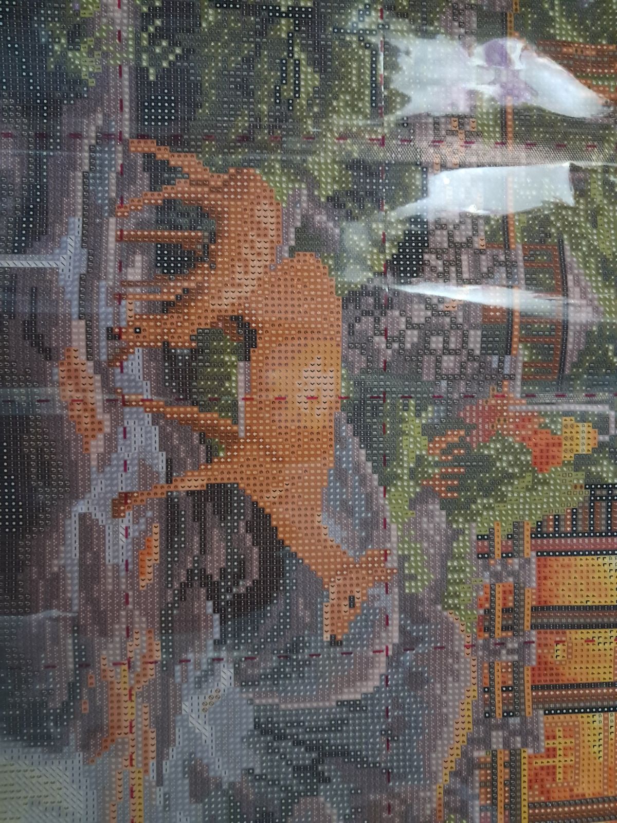 This artwork was the reason I discovered Diamond Art Club. I had just finished my first very small diamond painting from the local crafts store and was looking for a new project. As a complete beginner I realised this would be a challenge, but I figured the most important part would be to work on something beautiful. It took me a month and a half to finish this one, and for the most of that time I loved working on it! There are so many colours in most of the sections and I sometimes thought it took too long, but then I stepped back and looked at the canvas from a distance and it was like magic. All those colours come together so well and create such a beautiful autumn scene.