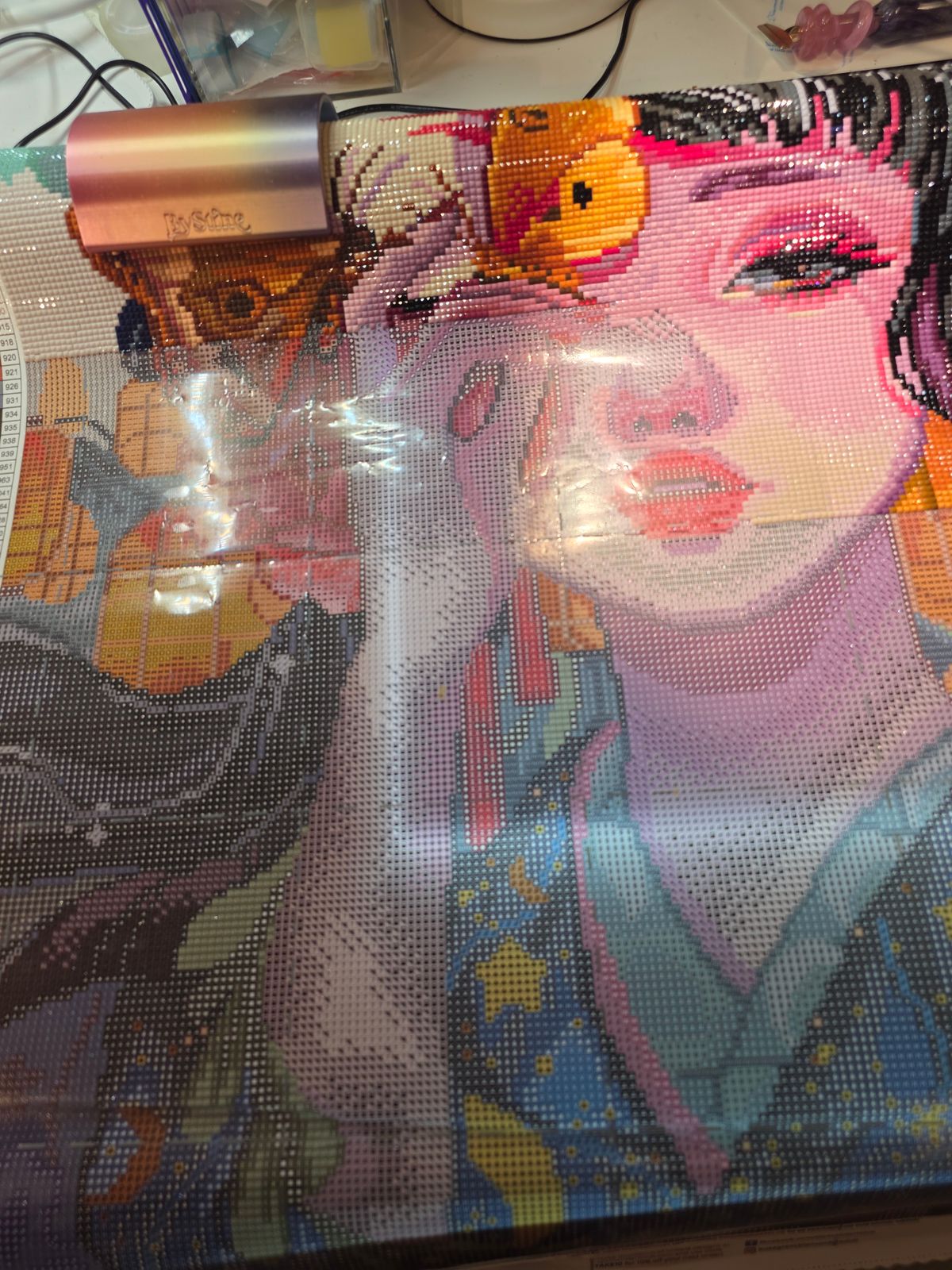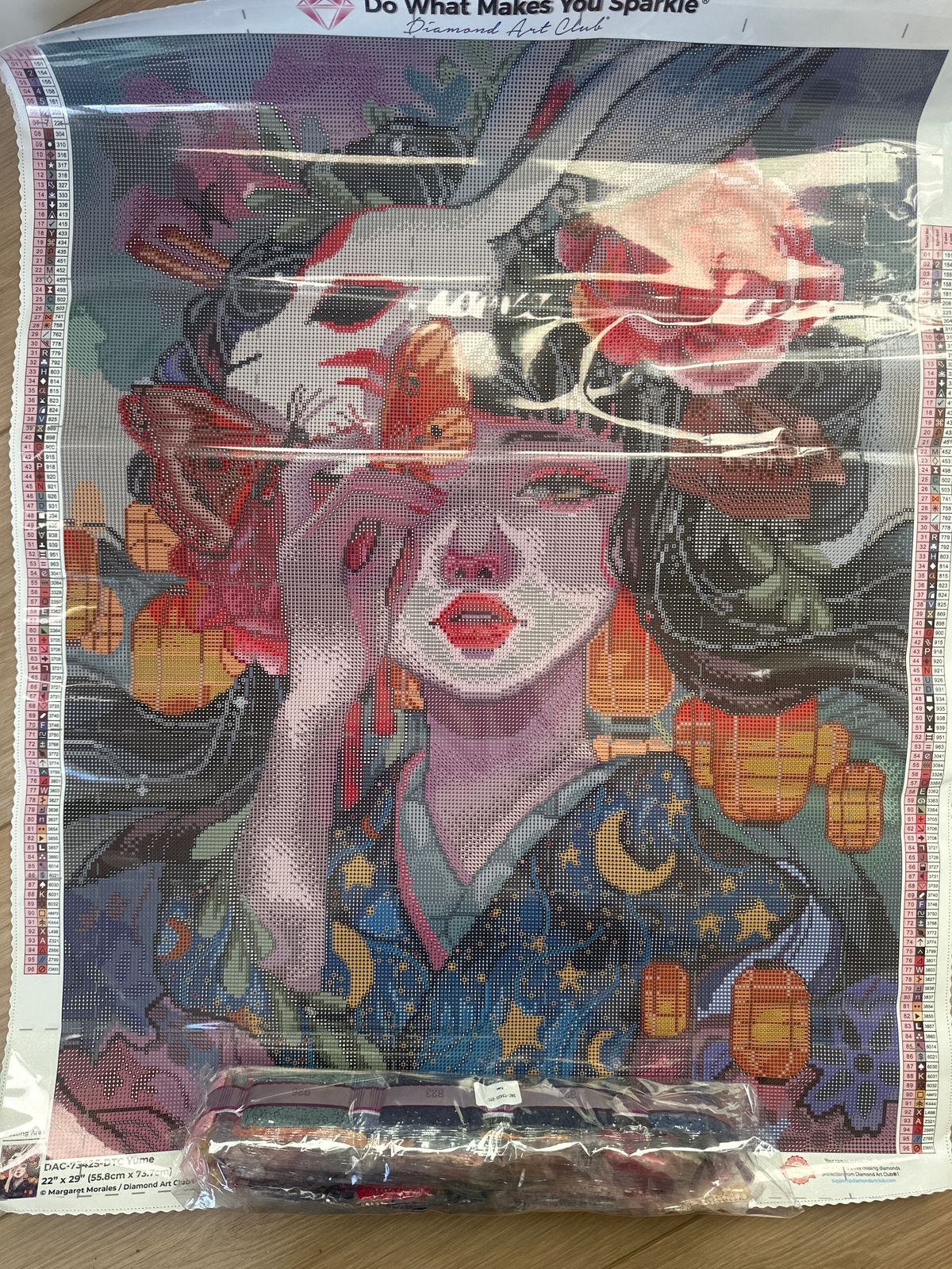 a complete joy to work on. the special drill moon and stars in her kimono were so much fun. one of my favorite diamond painting experiences to date.