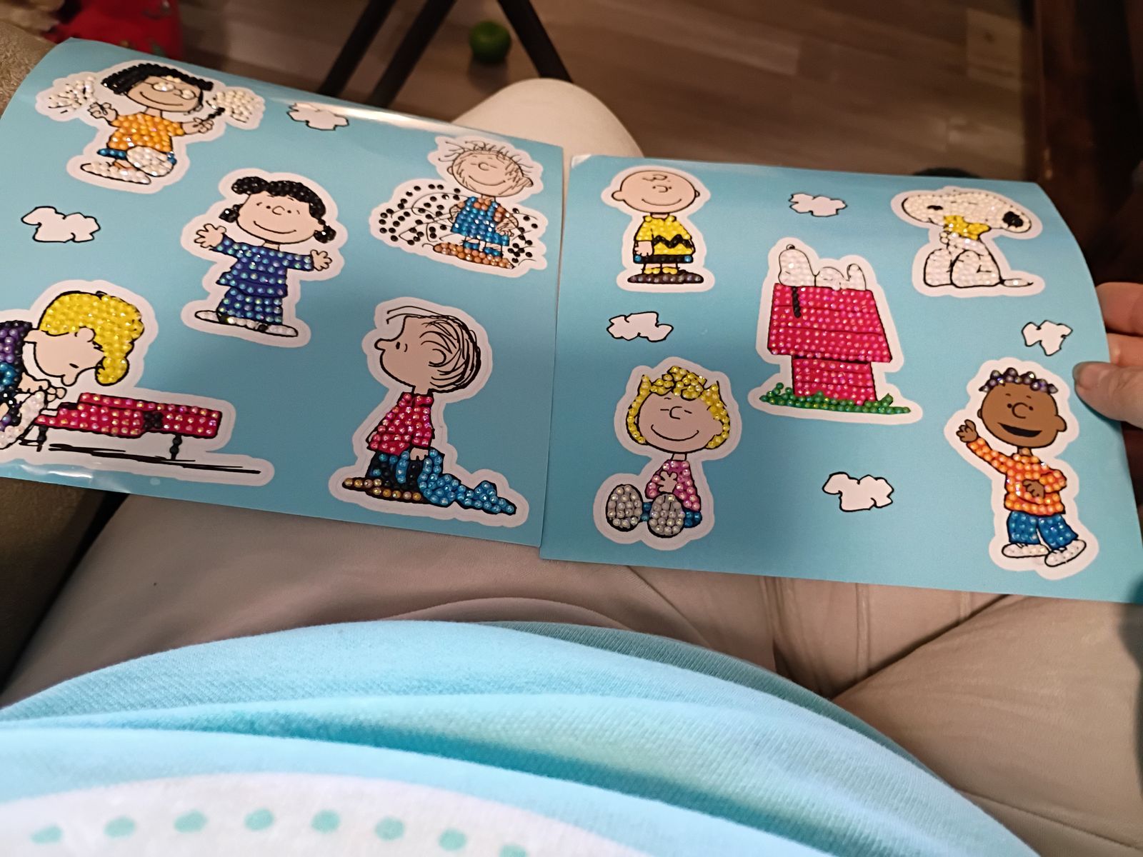 I love the Peanuts for the nostalgia of it. When I placed my first order from Diamond Art Club back in January I purchased a large painting and these stickers to try. I set the stickers aside until recently and I loved every second of working on them! They are so cute!