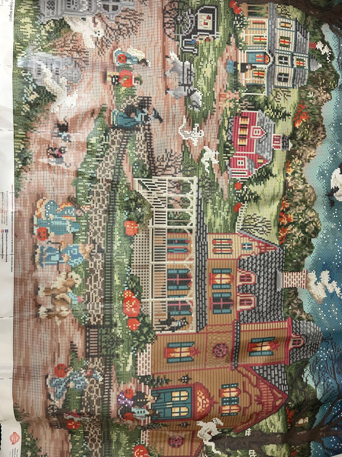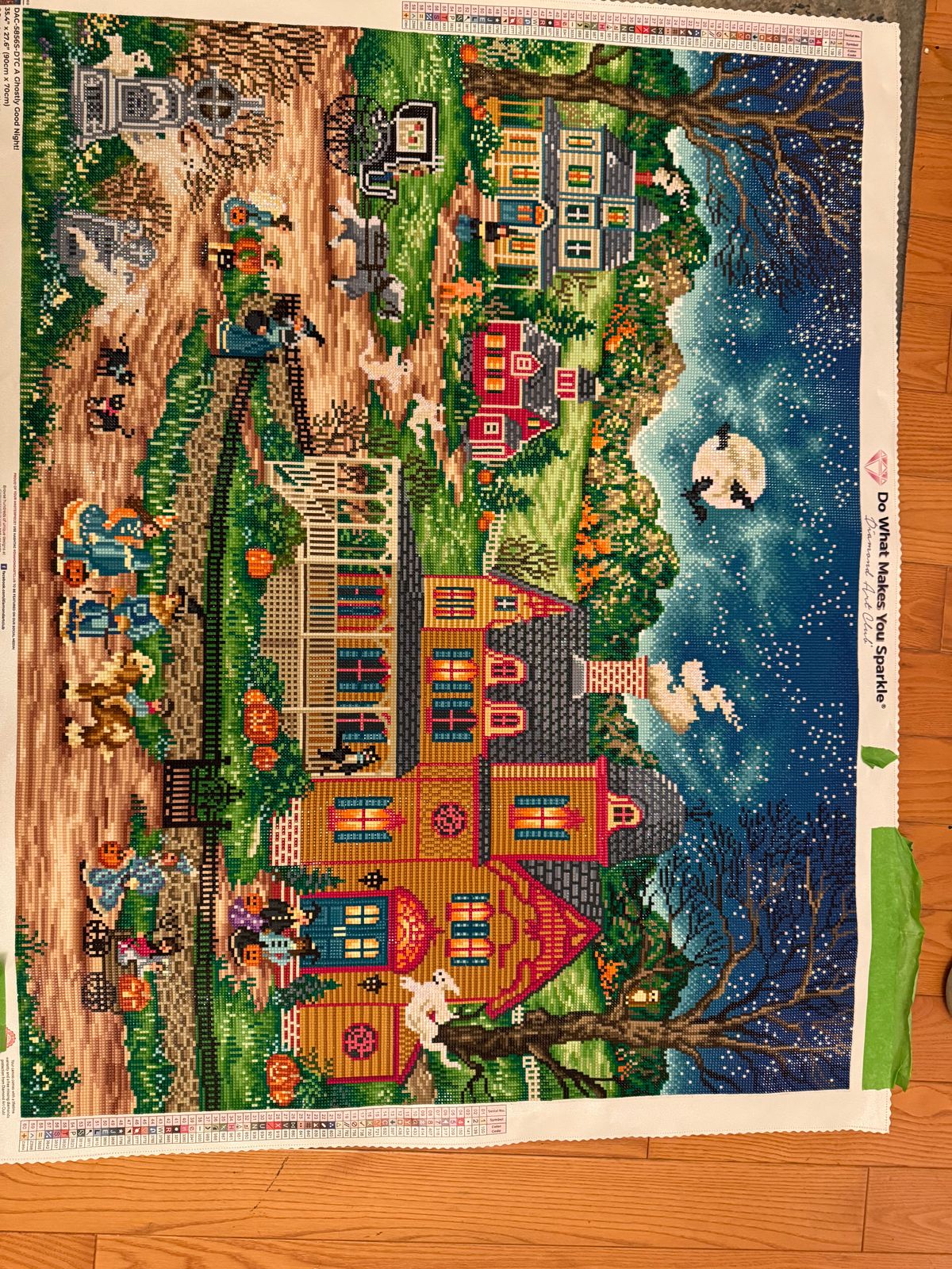 Really love the "ole" style paintings and this one is no exception. A ghostly good night is filled with goodness, children tricker treating, pets, ghosts and withces mingled in...absolutely perfect.