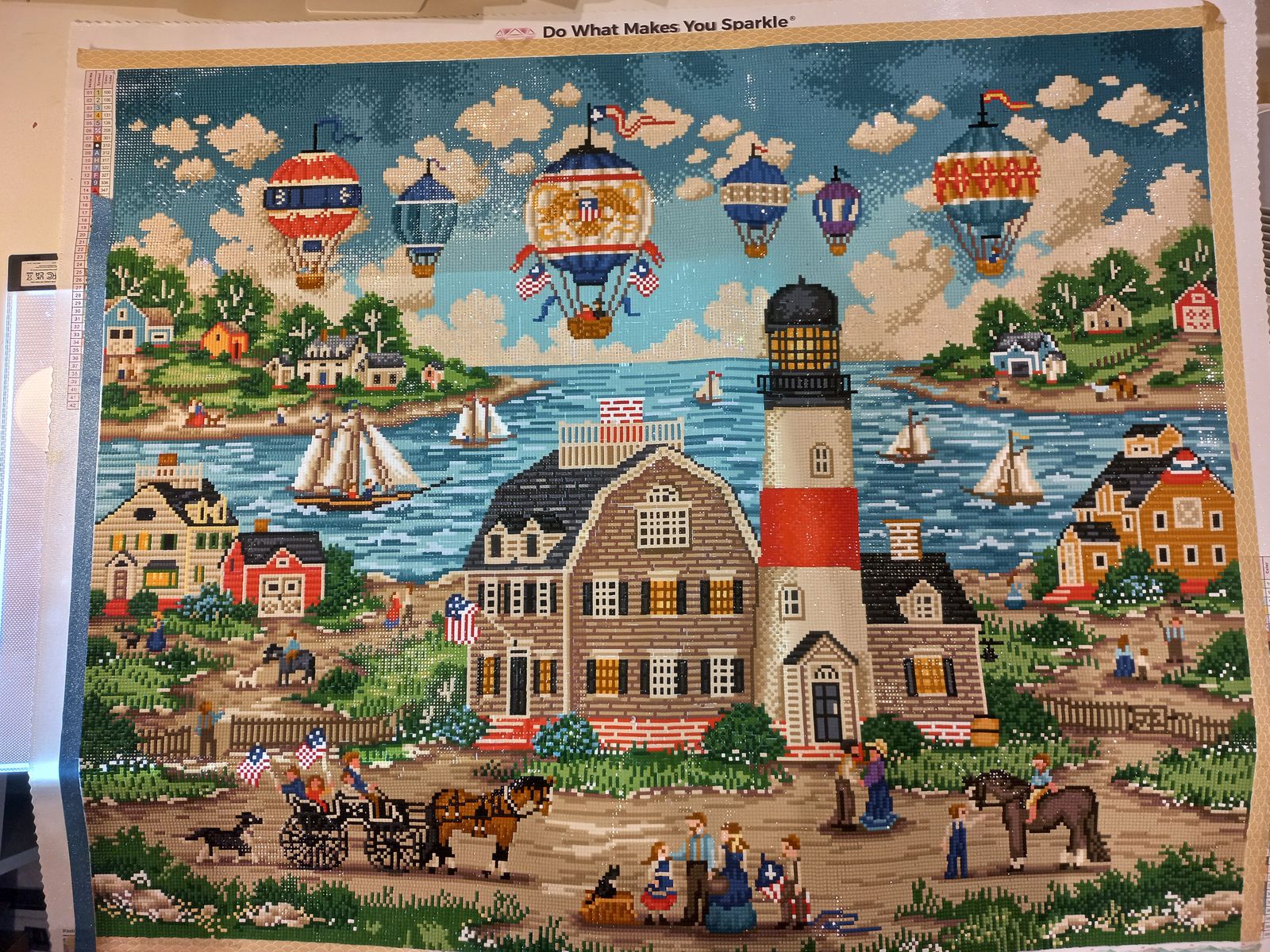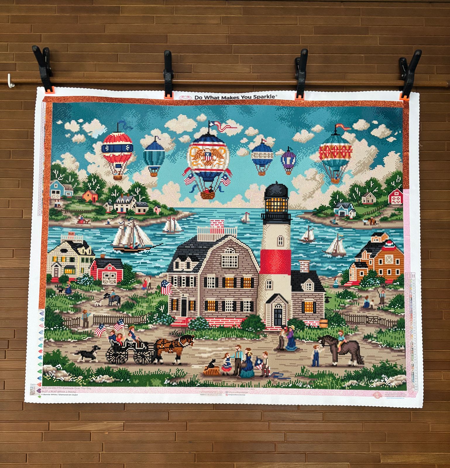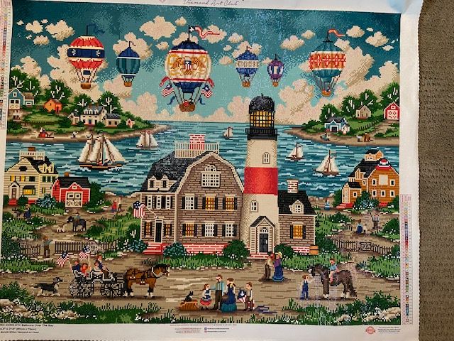 Very quaint scene. Lots of fun memories of what life was like. Lots of color, Brings back the old cross stitch days. Square drill canvases are great to do. More realism shows through, looks close to the picture.