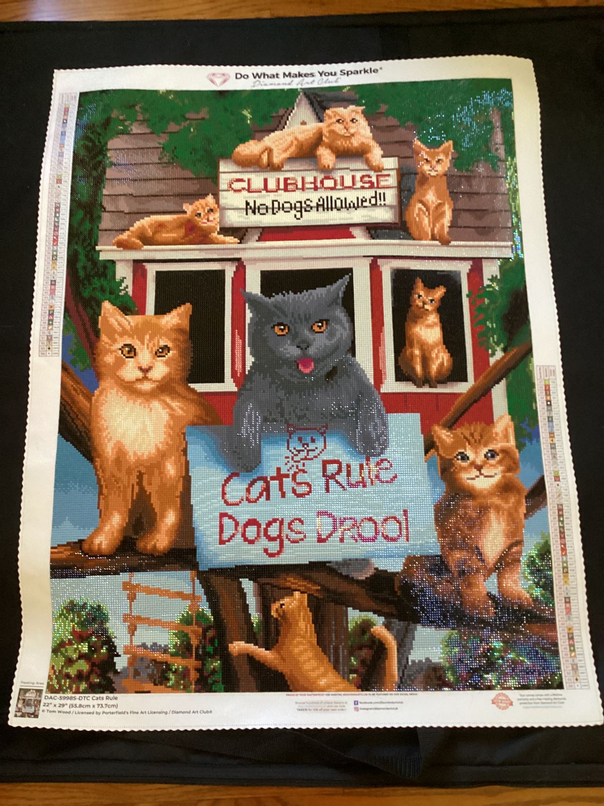 I absolutely loved working on “Cats Rule”. It was fun and easy. There was quite a bit of color blocking so it worked up pretty quickly. After I finished it I bought the “companion “Dogs Are Cool”, which I have not completed yet. The set together is adorable.