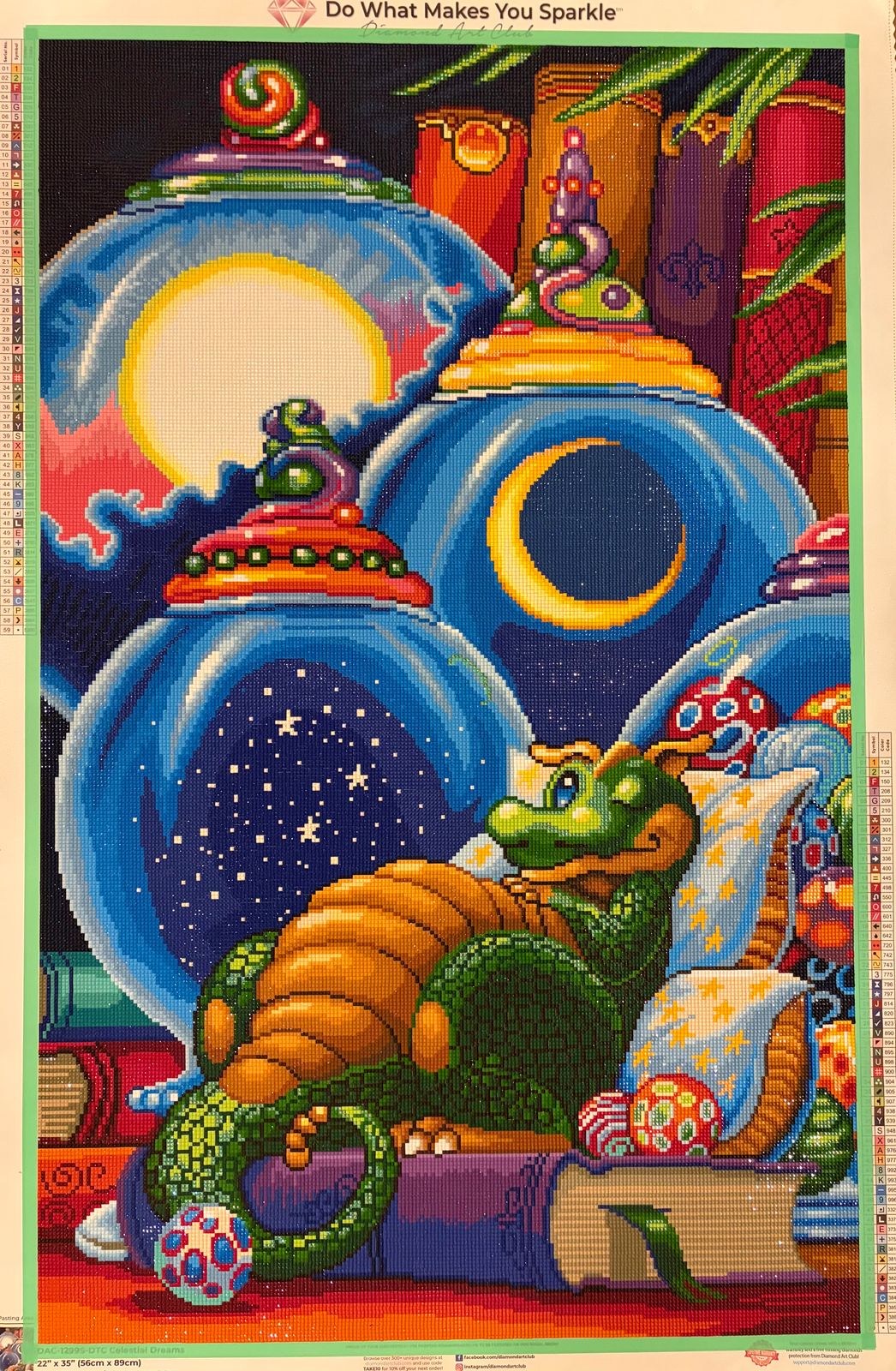The greens in this little Dragling REALLY stand out and the amount of blue colors are amazing! This diamond painting is almost finished FINALLY (it's taken me forever to finish it due to Adult ADD and depression) but there's a place of Honor waiting in my grandson's bedroom soon with lights behind the frame to enhance the beautiful colors in this painting!