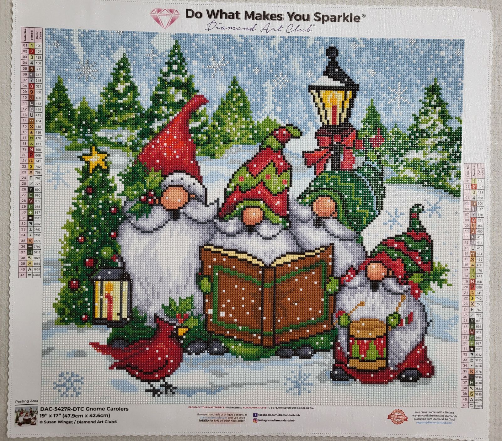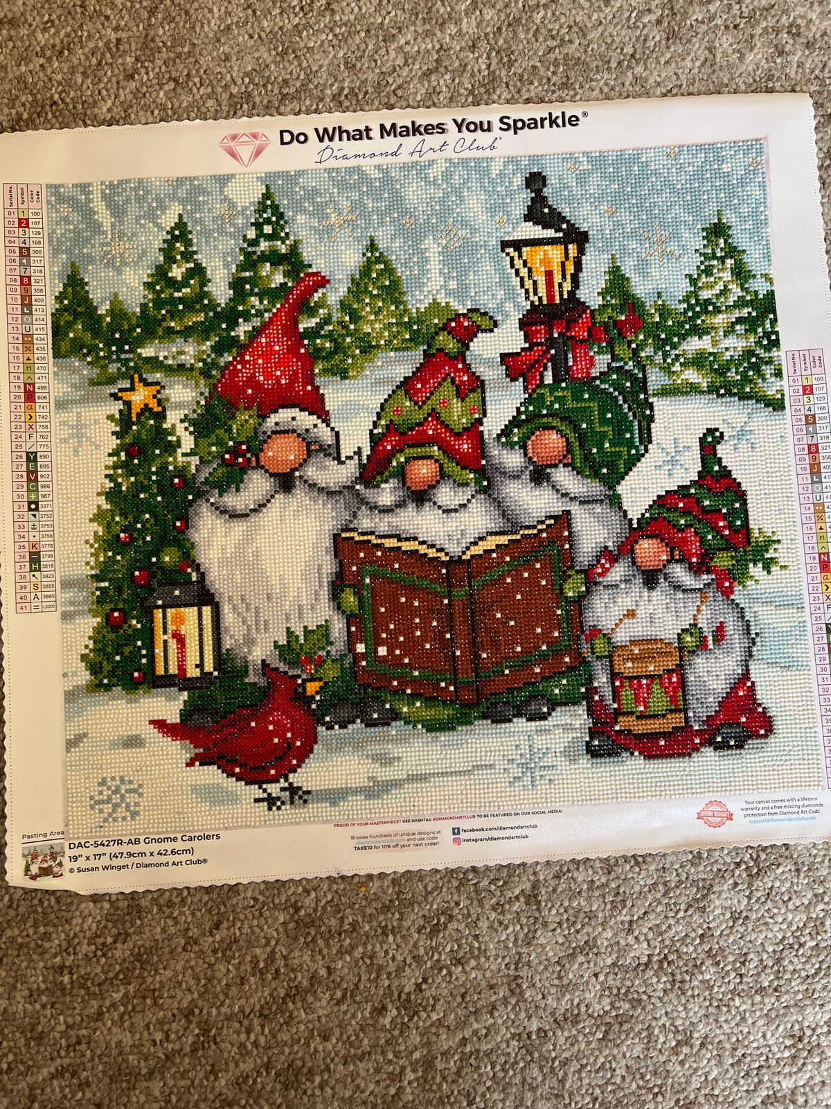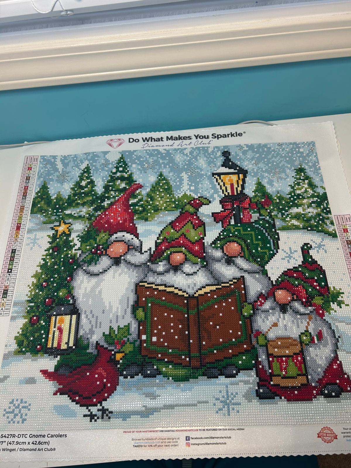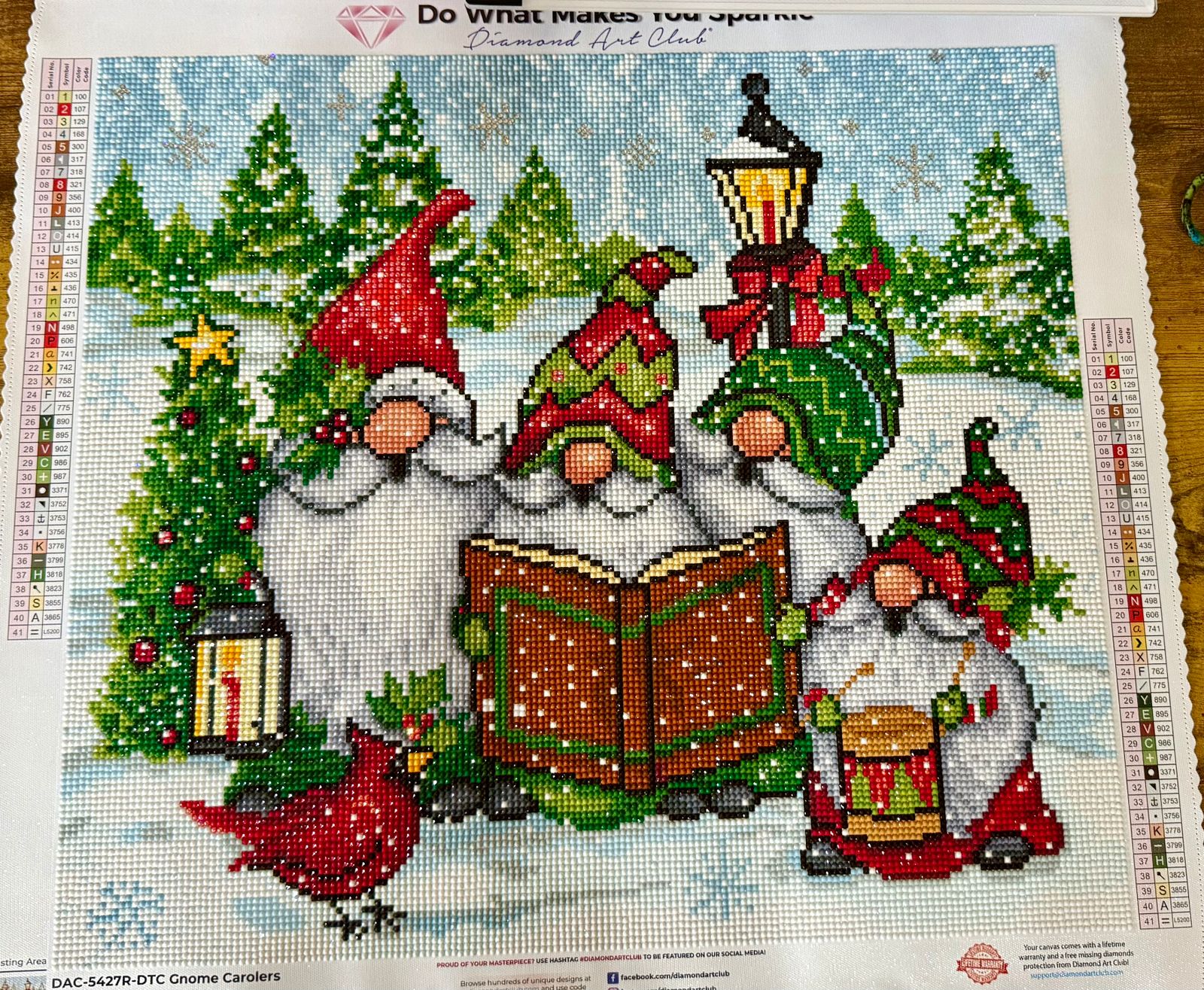 The quality of the Diamond Art Club kit was outstanding as always — clear symbols, perfectly sticky canvas, and sparkling drills that catch the light beautifully. The colors are rich and vibrant, especially the reds and greens, which make the whole piece pop.