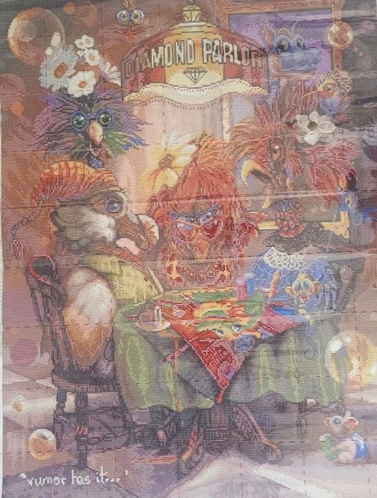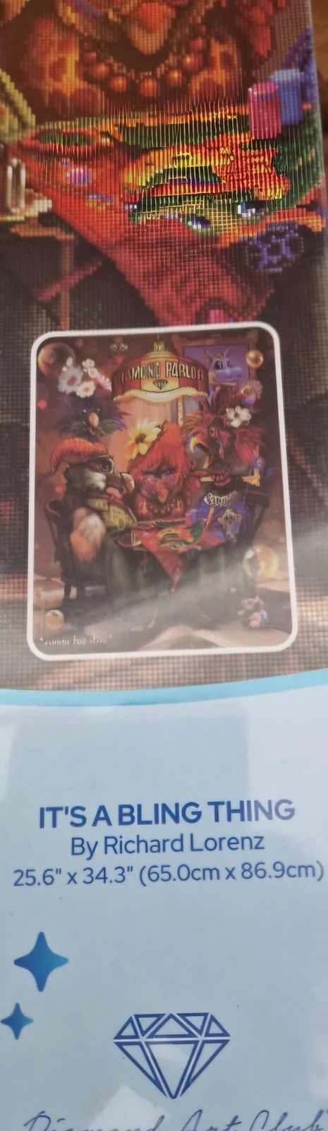 Another amazing piece of art. I really like both artists and had done their kits separately. When I saw this collab, I fell off my couch. The vibrance, details, artistic perspective, etc are all very breathtaking. My significant other doesn't usually pay attention to what I diamond paint but when he walked past and saw this WIP, he stopped and asked to study at it. He was very impressed by the artwork and he felt that the artists created this piece specifically for diamond painting rendering. He commented on the positions of the details and the colors, etc, all seems to be for DP only and wouldn't really be there if it was a normal drawing/painting. This is such a special piece to me! So much fun working on it and lots of colors and confetti.