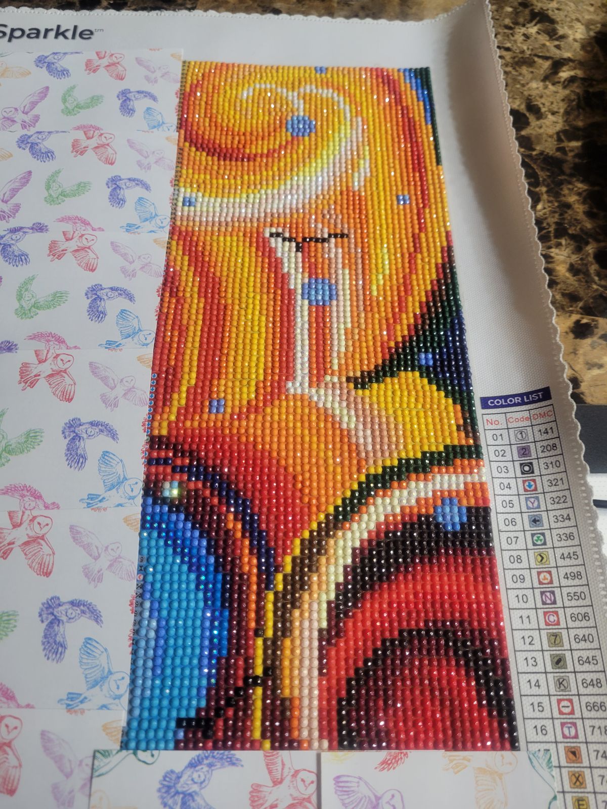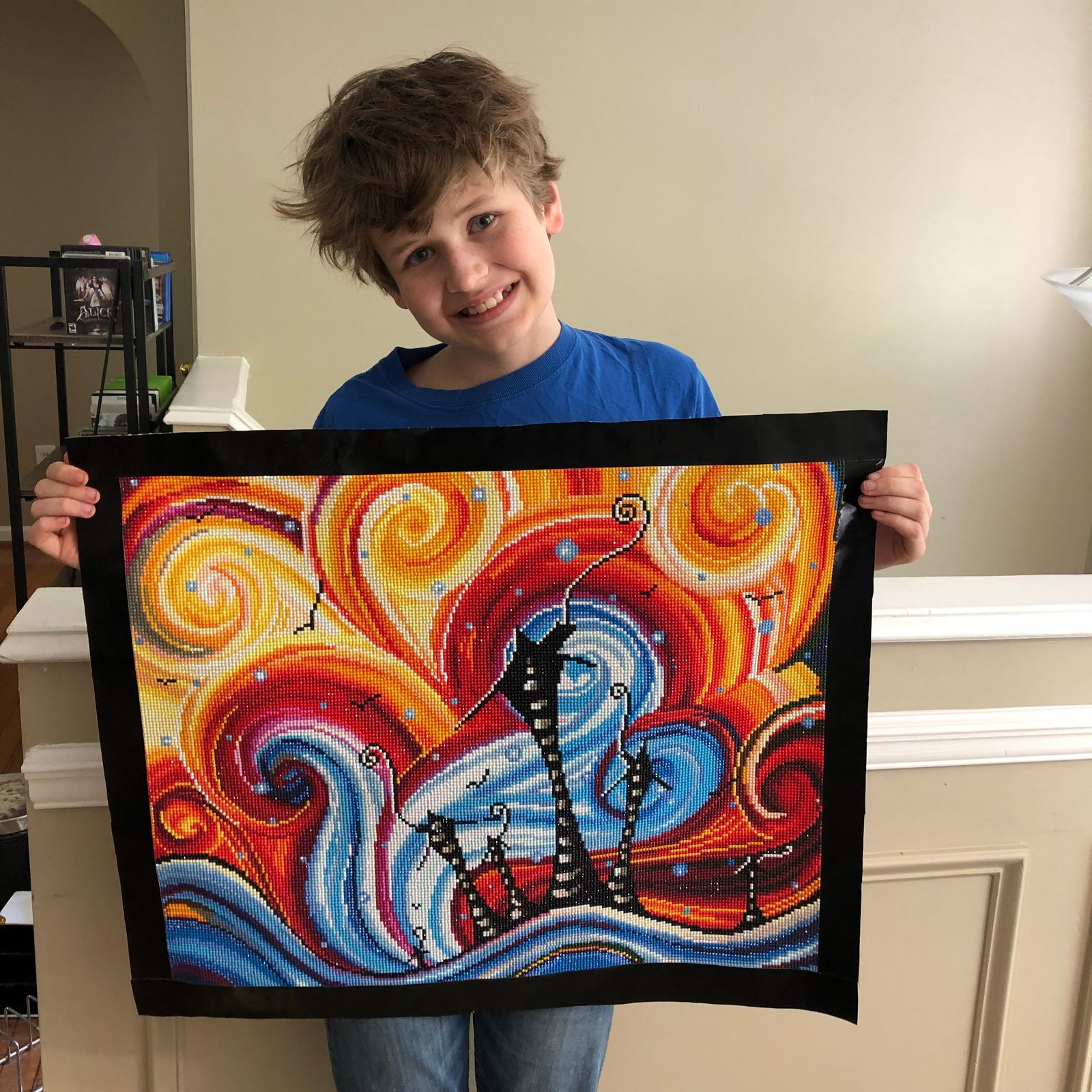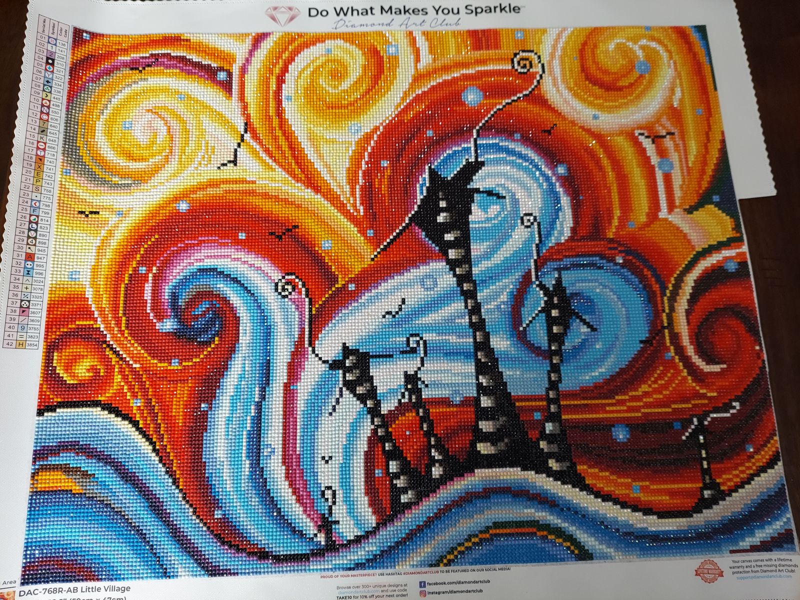 This is my first piece from Diamond Art Club and I love it! It is a relaxing way to spend some time and this piece in particular is fun and quirky. I love the cute little elongated houses. It reminds me almost of the style of Tim Burton. 5 stars, would recommend.
