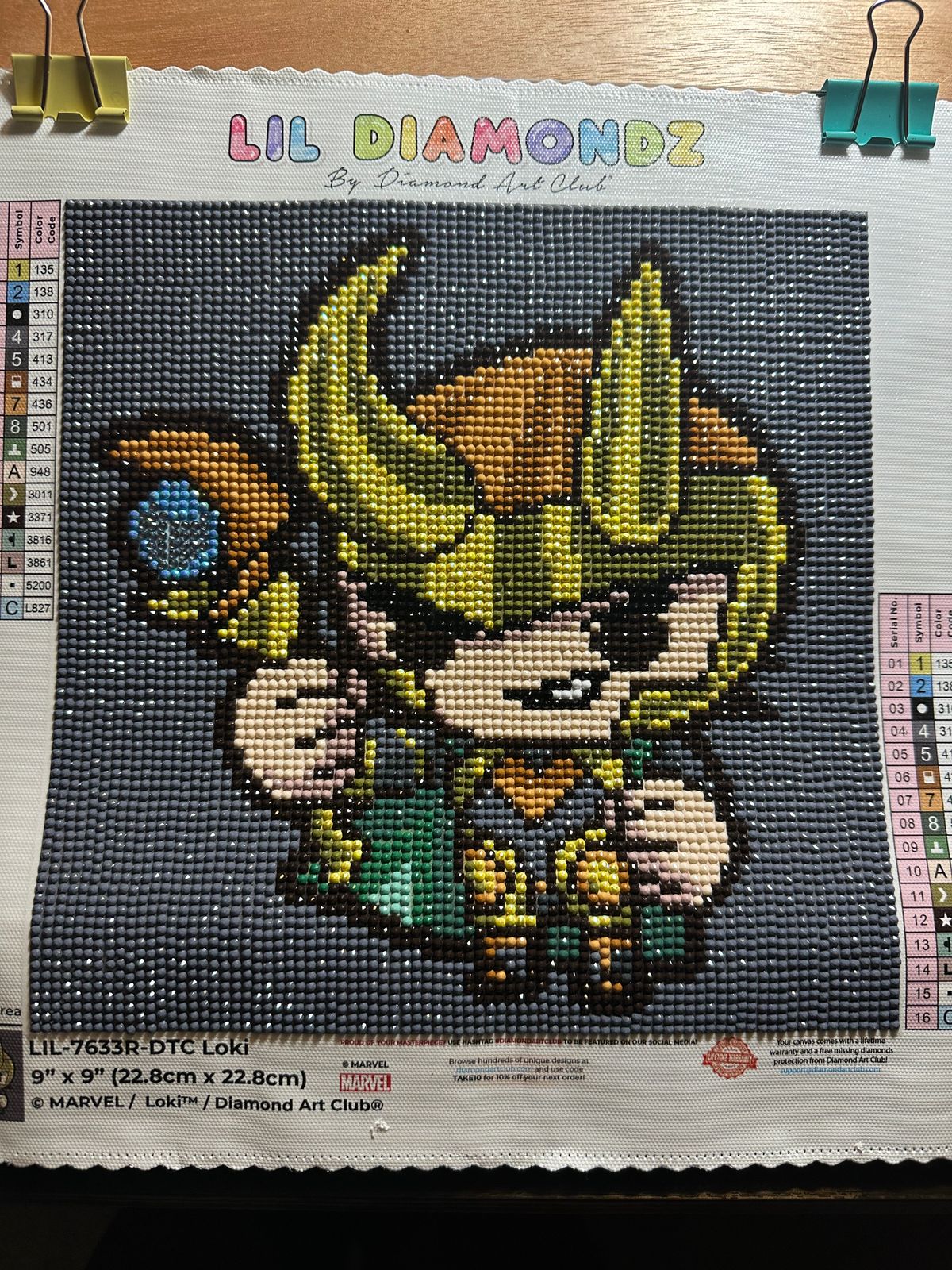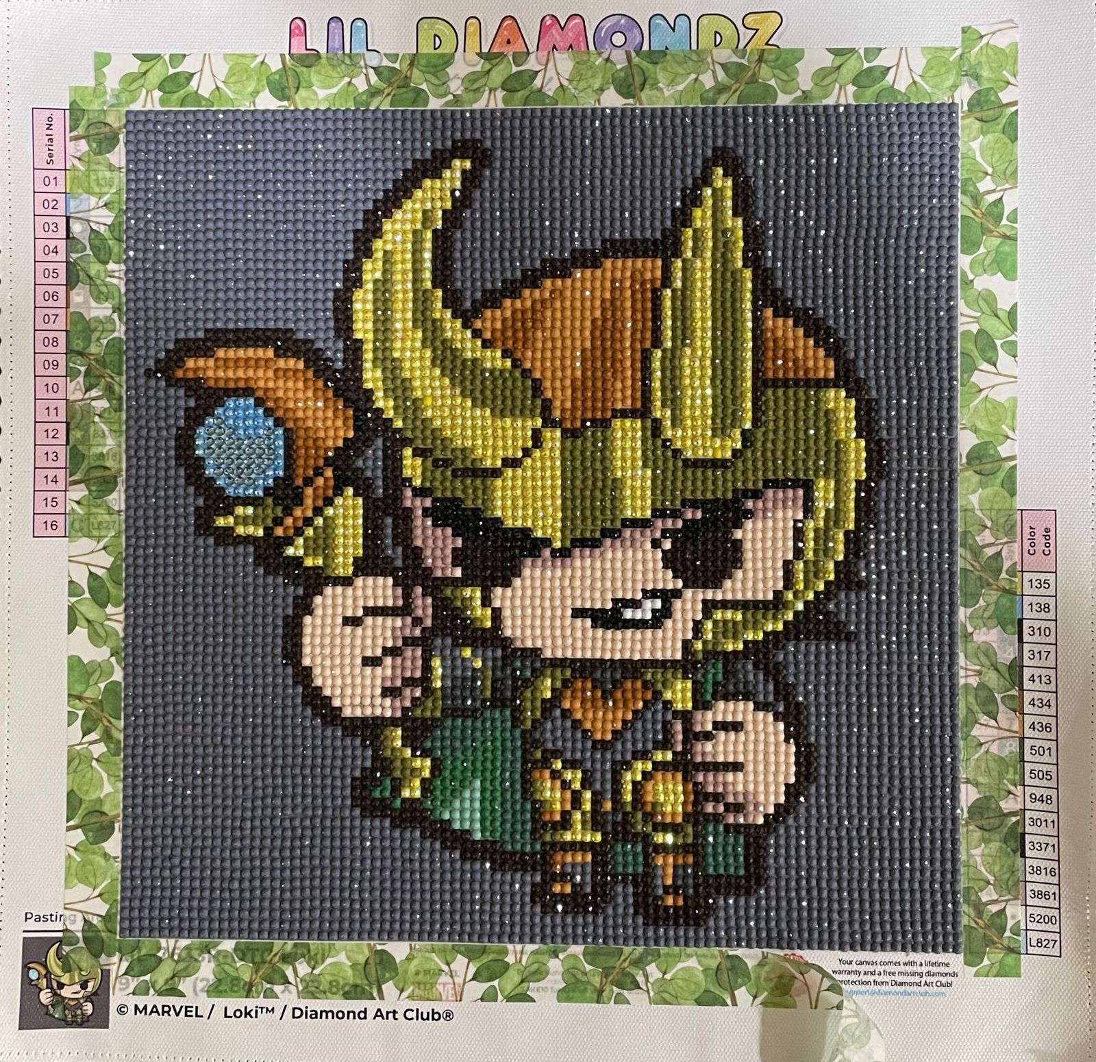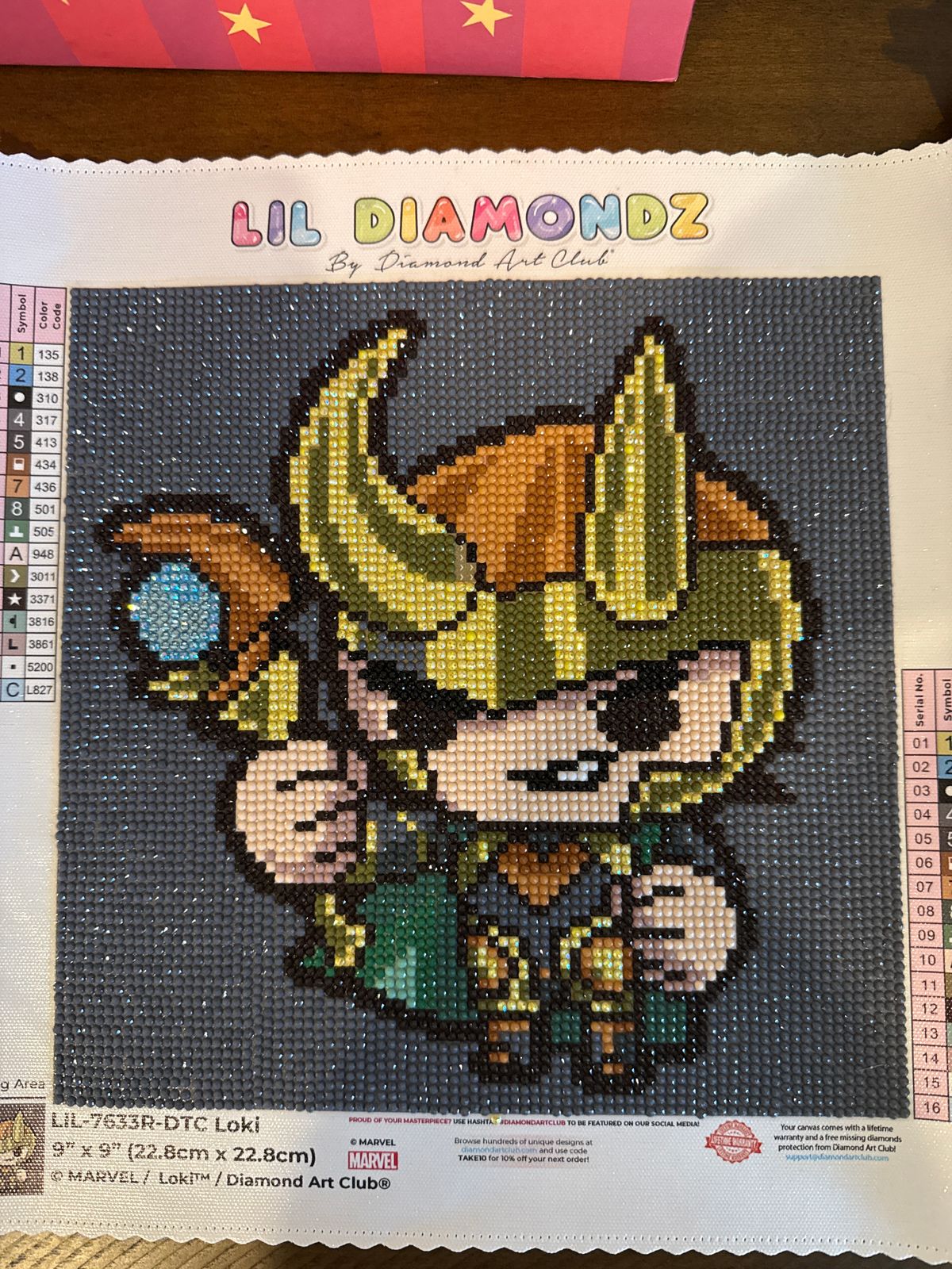 I got this little guy to give diamond painting a go and see if I liked it. Needless to say I'm obsessed now! Little Loki is so cute and so sparkly! He's a perfect size for a beginner or someone just wanting a quick project! It was great to start getting the hang of things but also get the satisfaction of finishing a project. Loved it!