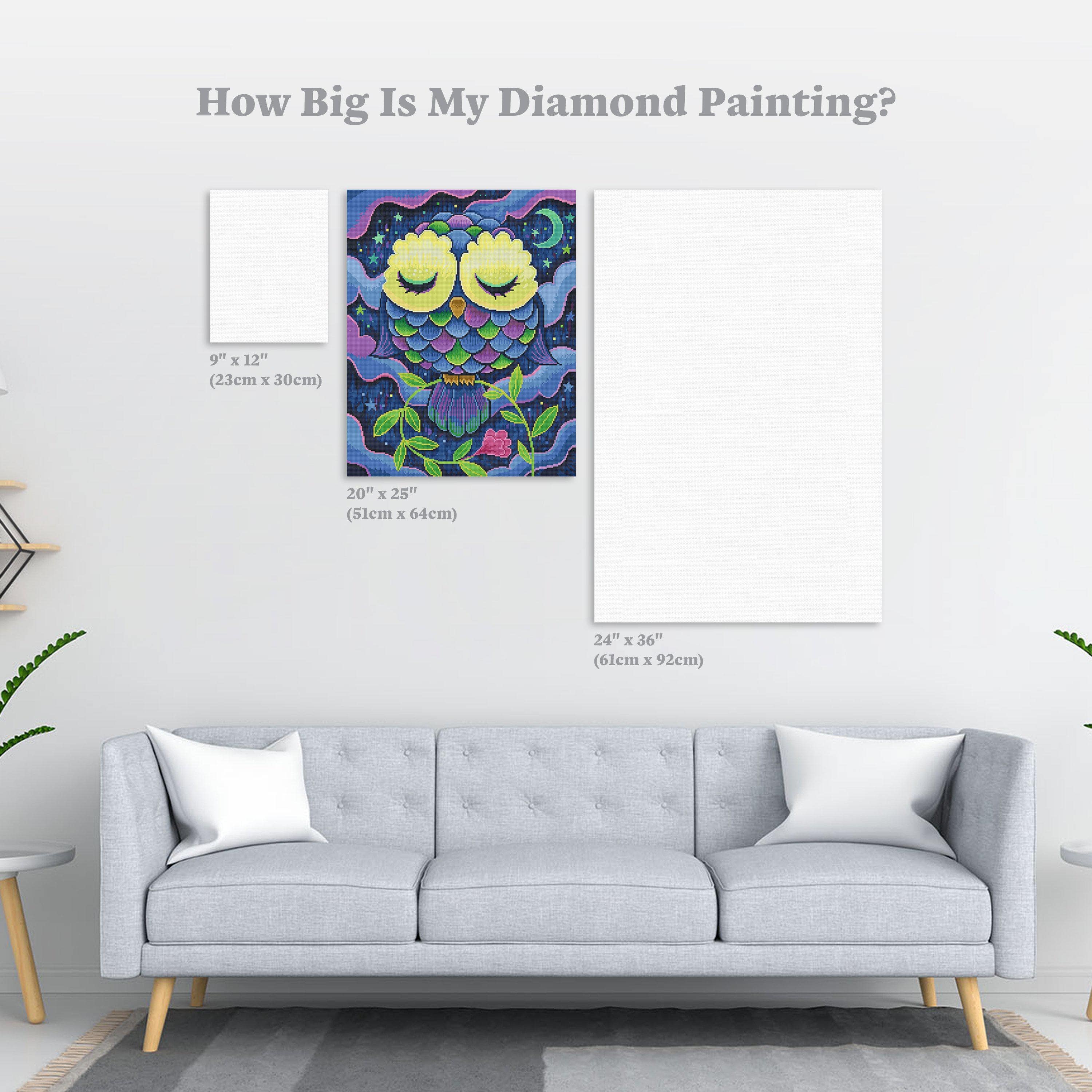 Drift off to dreamland with the help of this perfectly perched owl blissfully slumbering away on a pink flowered vine. As its eyes glow with content, the shimmering night sky sparkles with brilliant stars to lull your spirit into peaceful calm.