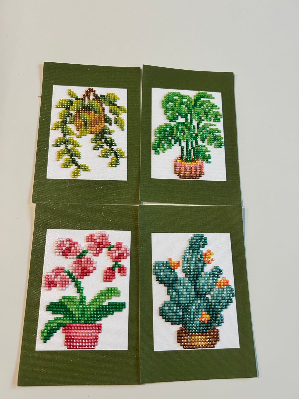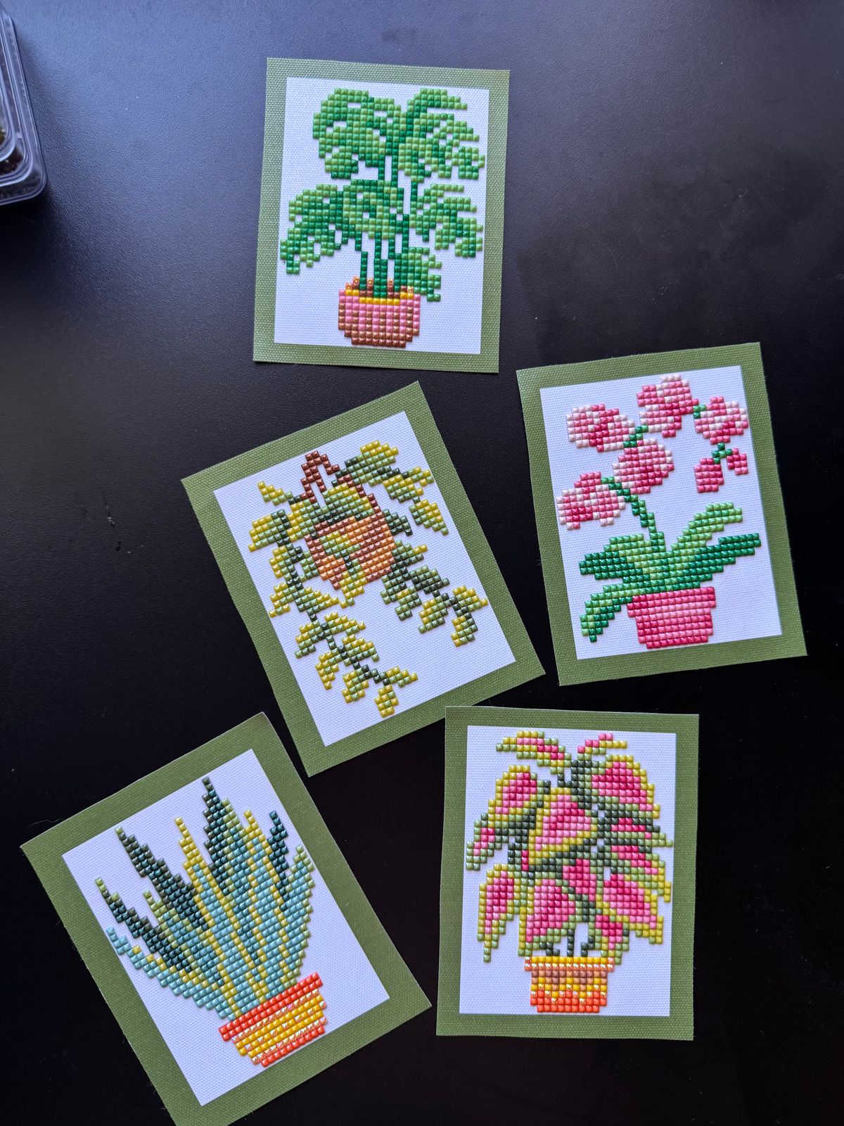 These little house plant dazzles are adorable and very fun to work on. I love the pops of pink! And the rich green to pastel sage colours are divine. The photo's don't do them justice! So pretty in person.
