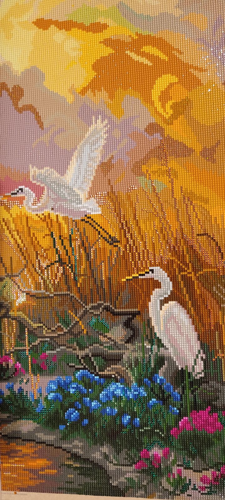 This piece is absolutely stunning completed!! The colors are both muted and vivid at the same time. It's nature at its finest. The detail is amazing!! I can't wait to hang it above our bed to complete the beachy theme of the room!!