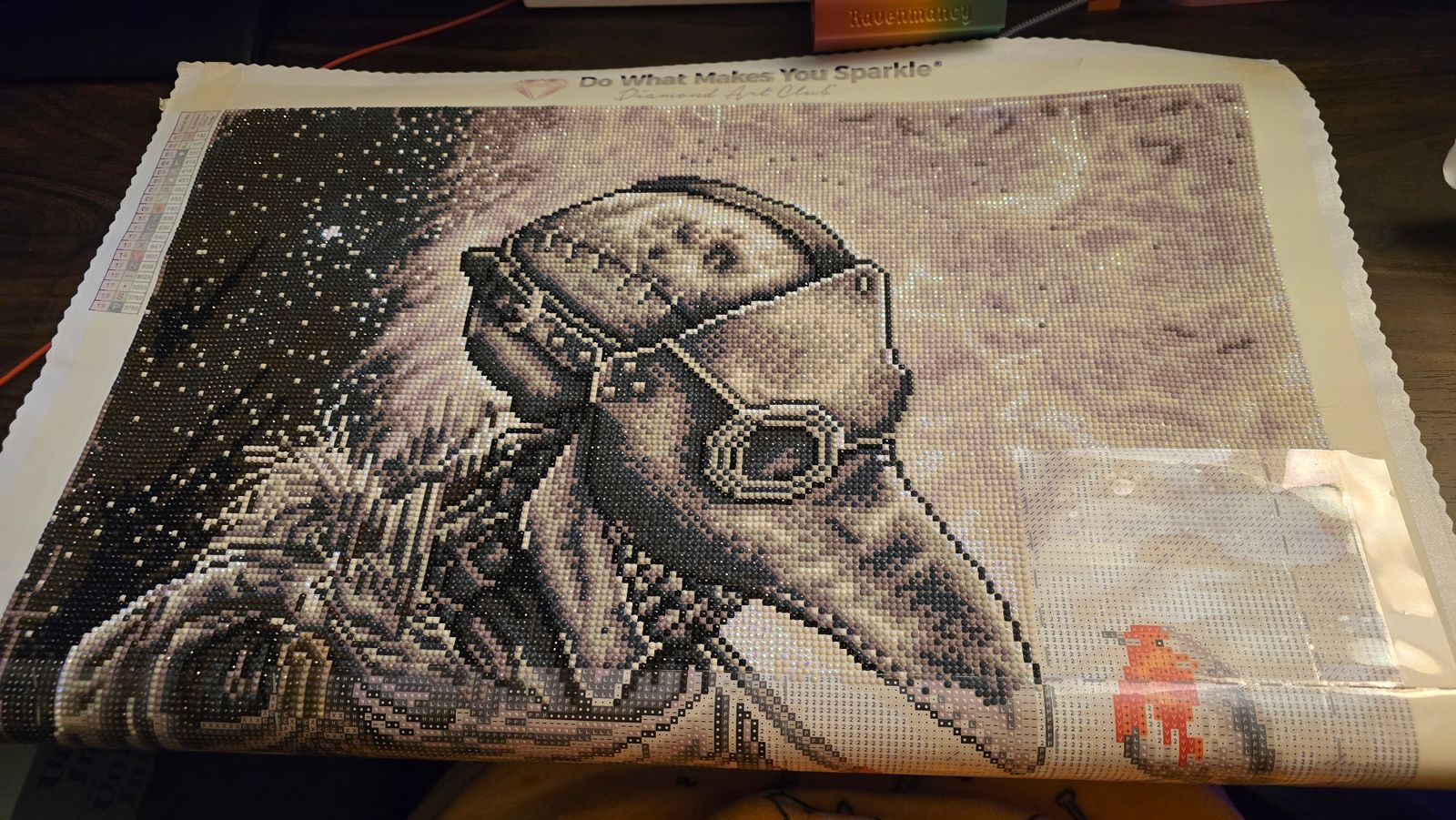 I was a little intimidated by the color palette of this one, since it was mostly beige and dark browns/black, but it went surprisingly quick and easy. A great mixture of color blocking and confetti! Wish I could do it again!
