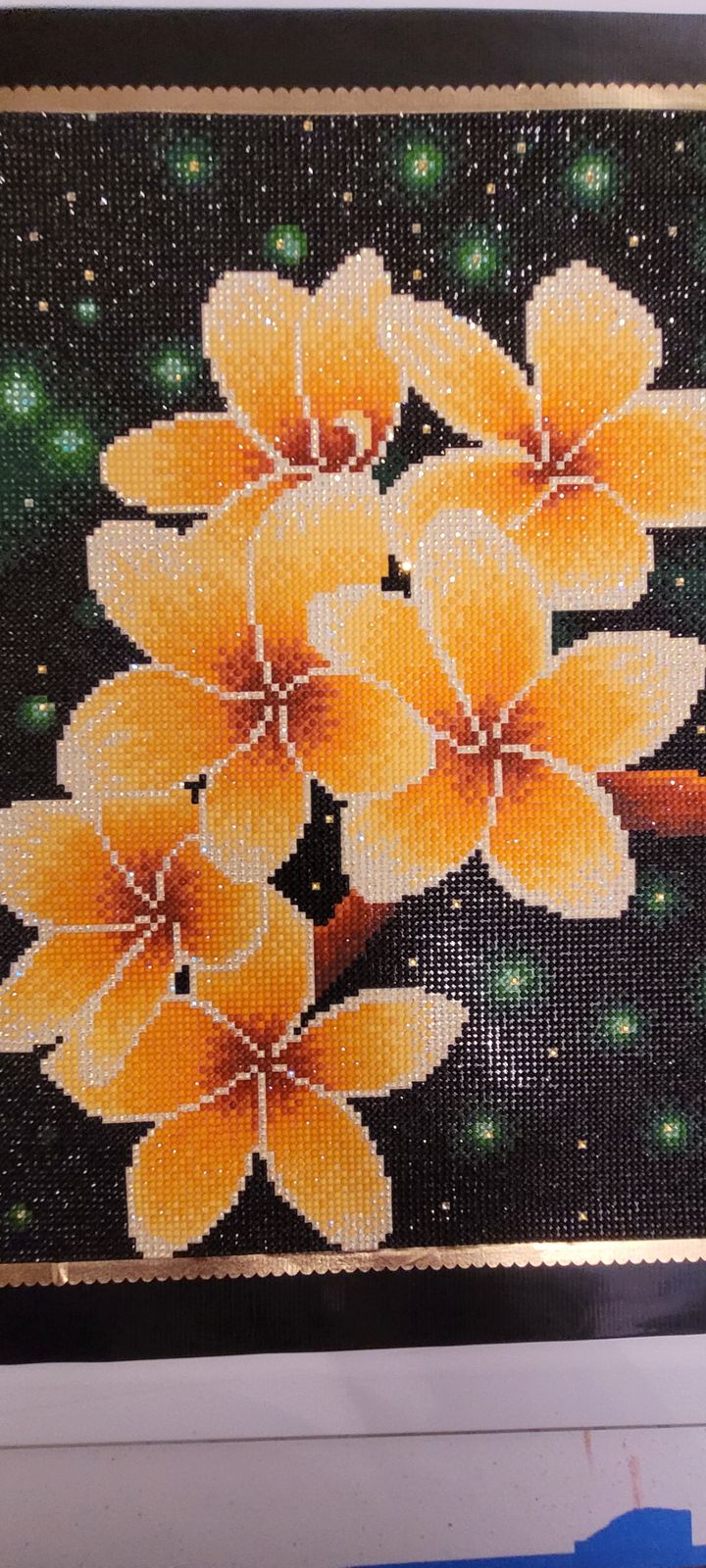 These flowers are so bright and cheery! They were a joy to do. The rendering was wonderful - only 33x44cm, so it fits on a laptable. Great quality drills, canvas, and symbols, as always.