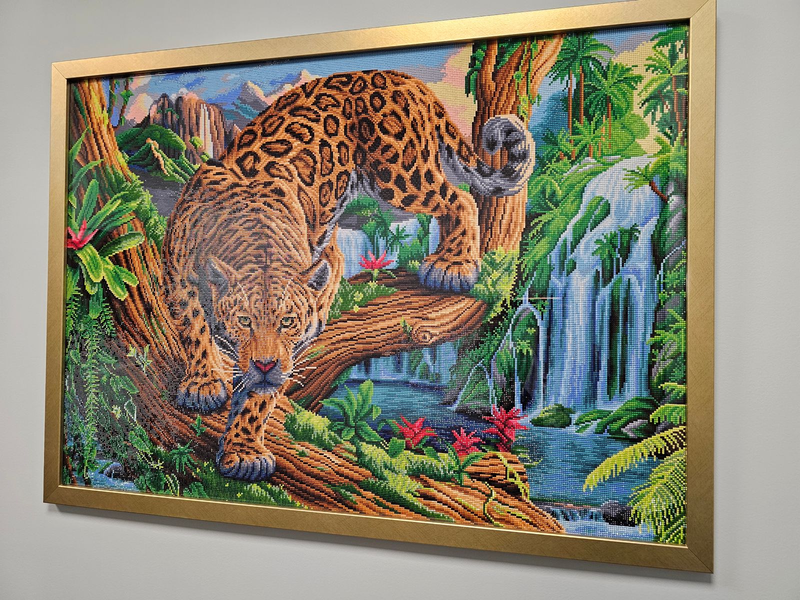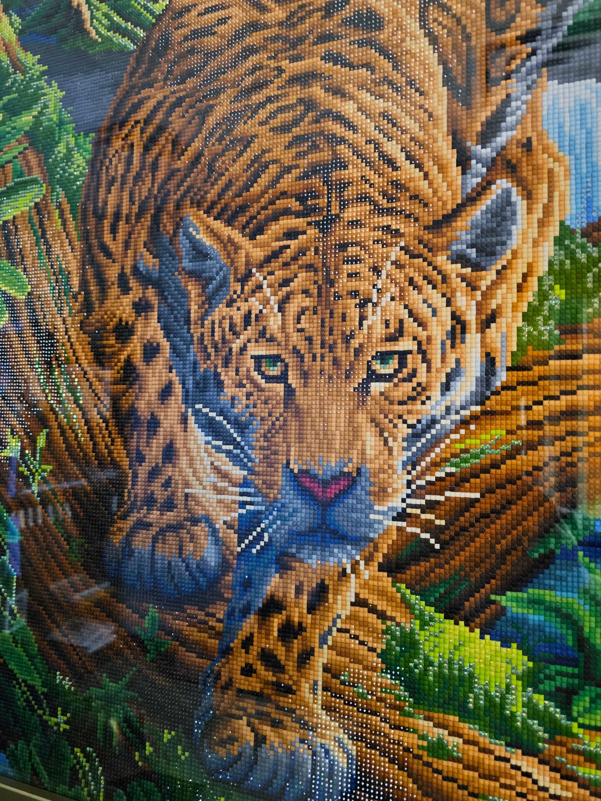 We have a big cat theme at work so I am able to enjoy Prowling Leopard from my office and absolutely love it! She was worth every hour I spent, placing most gems individually with tweezers.