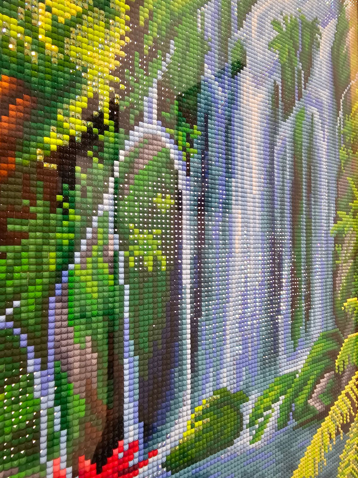 I had a wonderful time working on this piece! Looks spectacular next to Tropical Forest. More confetti than color blocking, but there was both. The ABs are beautiful and the whole canvas sparkles perfectly. Highly recommend!