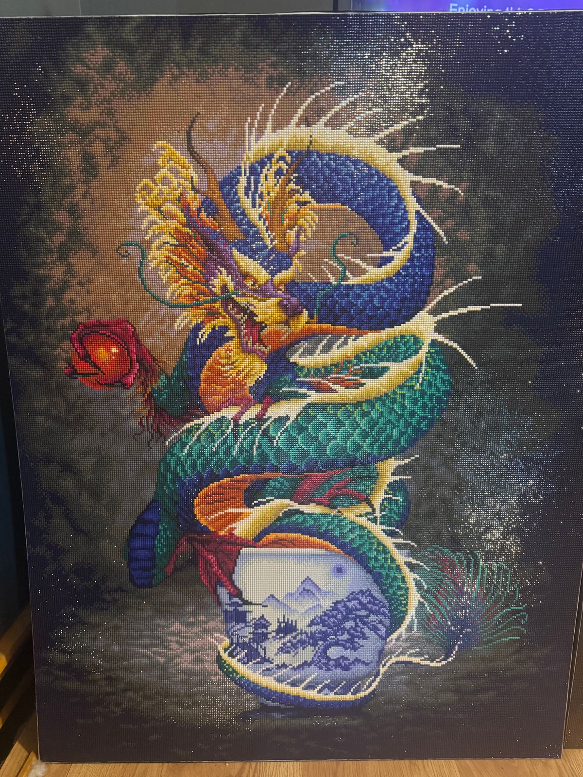This painting is amazing. It is one on my favorite drink dragons. The colors are so vibrant. The drills and drill field are excellent. This is a must have.