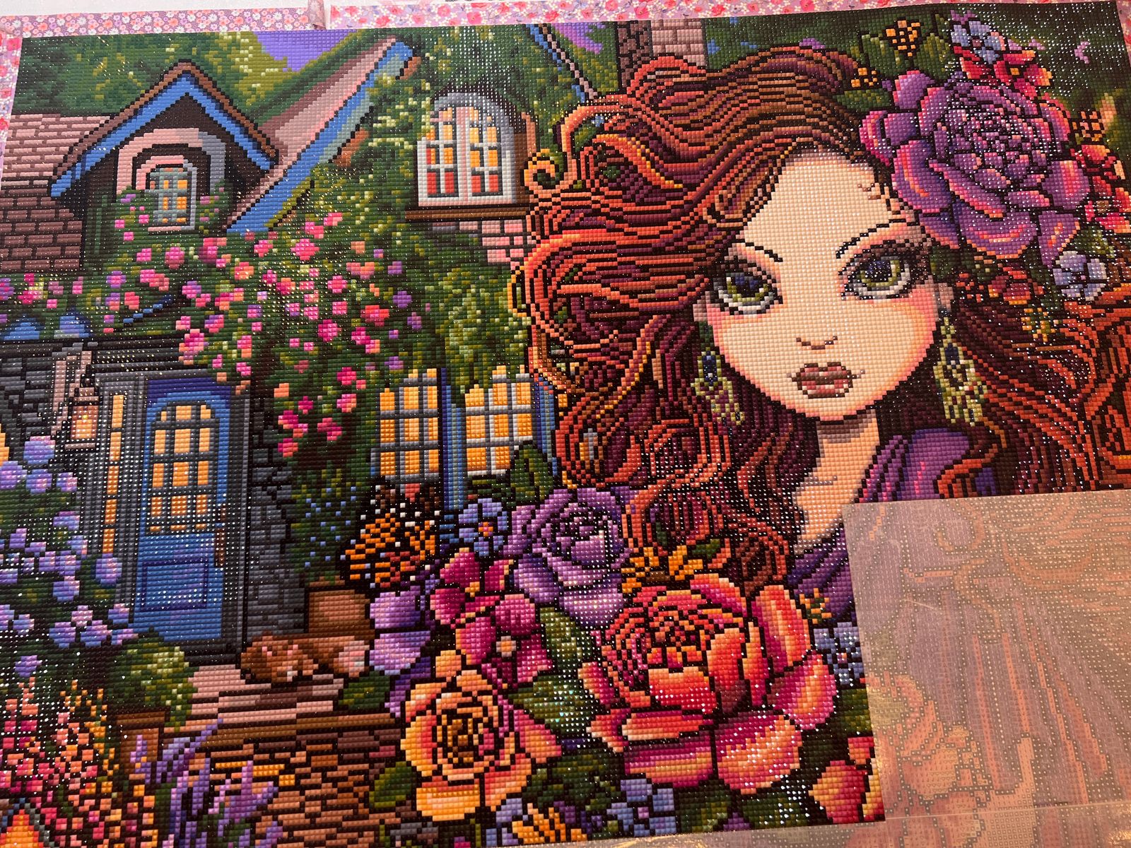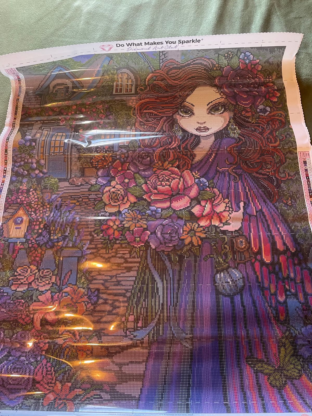 She is absolutely gorgeous, the colors, flowers, hair and her dress make a perfect diamond Art. Thank you Diamond Art Club for always bringing out so many beautiful canvases to choose from.