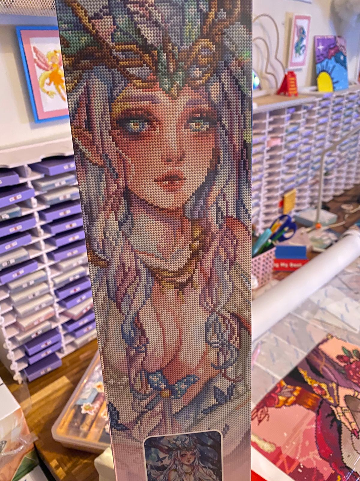 When I bought this canvas, it was the first round with the pink ink on the canvas. When I contacted DAC they quickly responded and gave me a choice to return for a full refund or get a percent off and keep it. I wound up keeping it and honestly am not upset that I did! This canvas came out amazingly gorgeous with all of the specialty drills and you can barely see the pink lines unless you're up close! In the lighter areas I'm just going to put some mica powder, but WOW! The updated round drills are so amazing. They line up when multiplaced and had barely any trash so it was so easy to work on. The rendering is stunning as always! Can't wait to complete more.