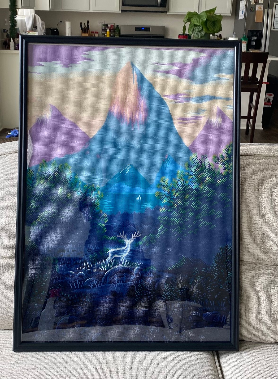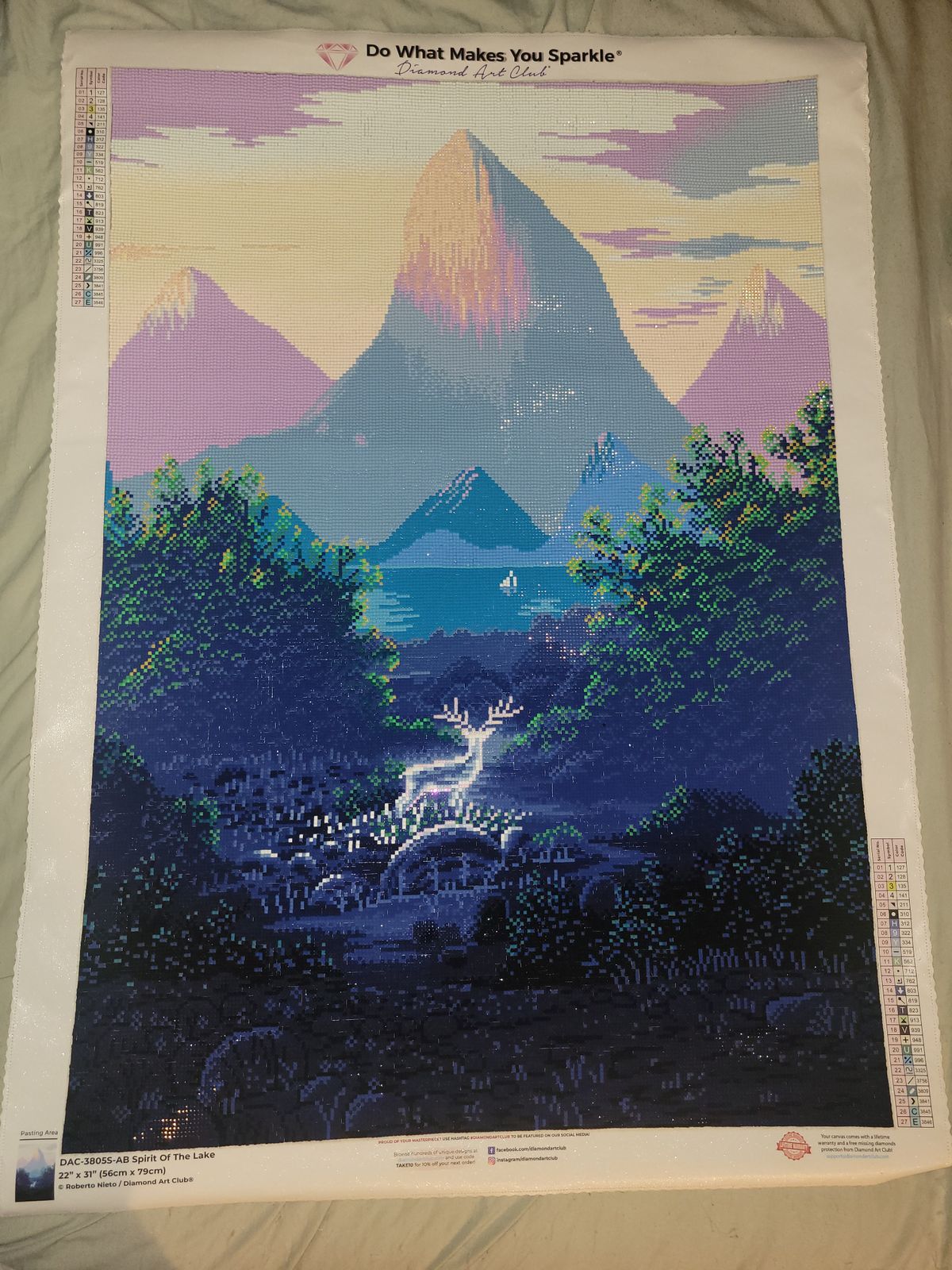 Great canvas to work on; especially considering the limited colors (only 27) and the canvas being equally divided between confetti on the bottom and color-blocking on the top. It also helped this particular canvas has the smaller grid size, so the drills fit so well together. I'd highly recommend this kit for someone that wants a great balance while diamond painting. The overall rendering is stunning!!