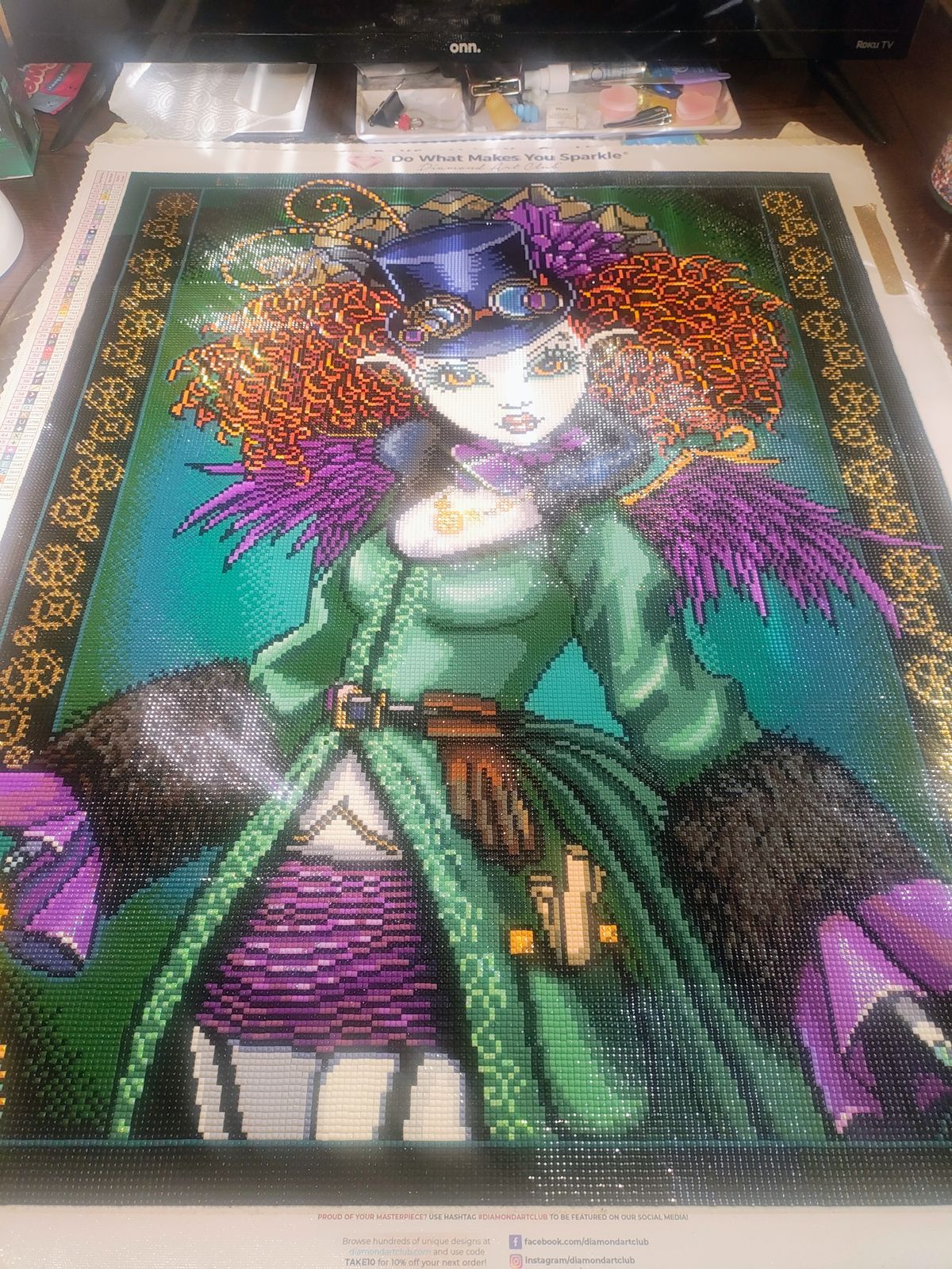 I love this canvas and had a wonderful time completing it. Because this was my first DAC purchase I wasn’t aware that you can only request missing drills once. They did assist me twice, however I ended running out of a dozen colors and needed to buy the additional drills that I ran out of.