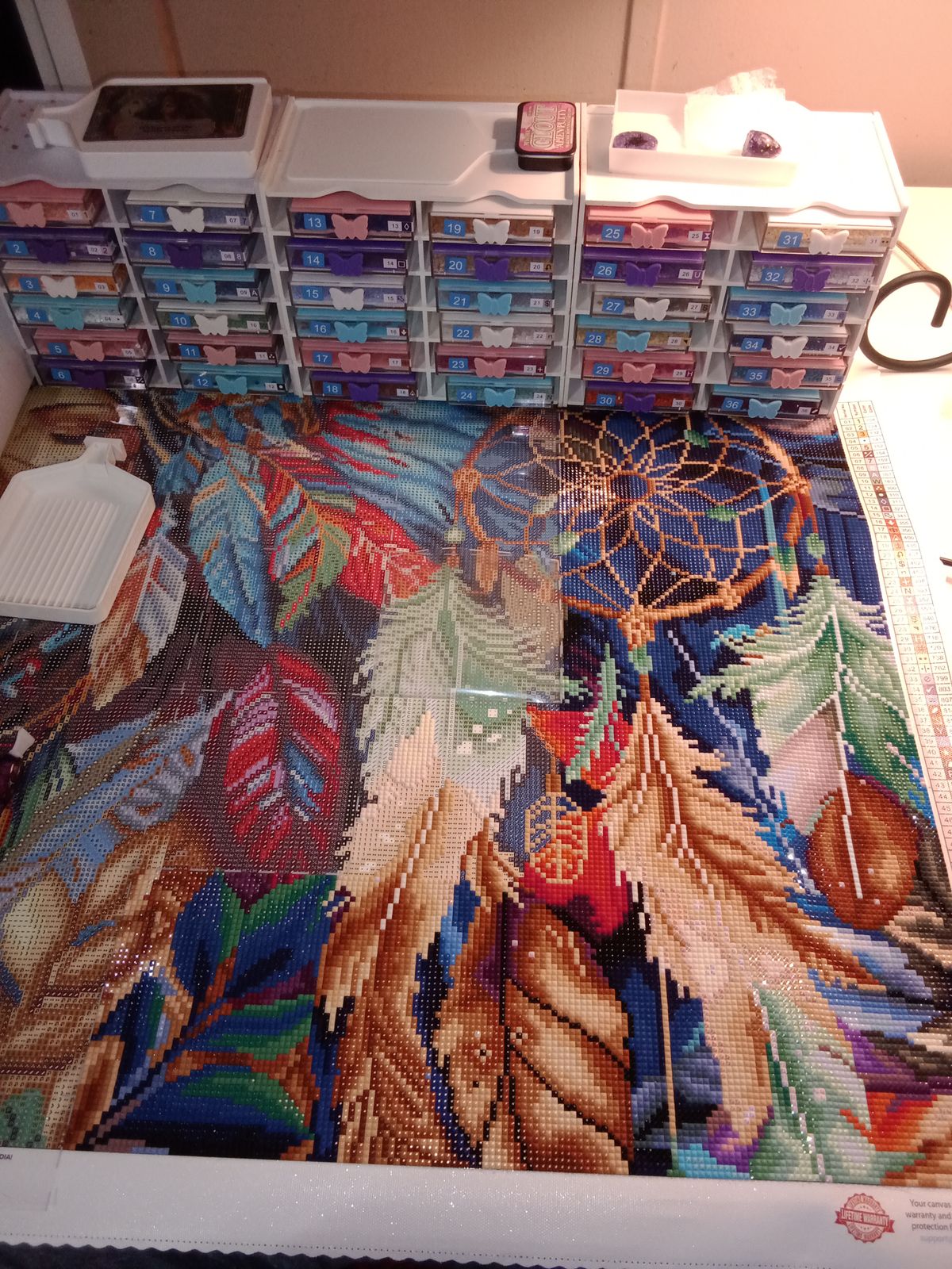 Love love love this one. It’s perfect. I did change the wolf eye color from red to green and I love how it came out perfection. The perfect amount of confetti. Hardly any blocking. The whole painting is beautiful!!