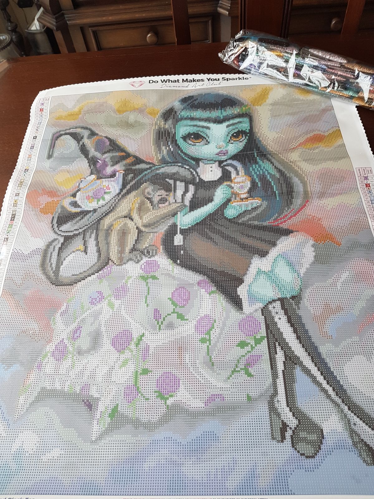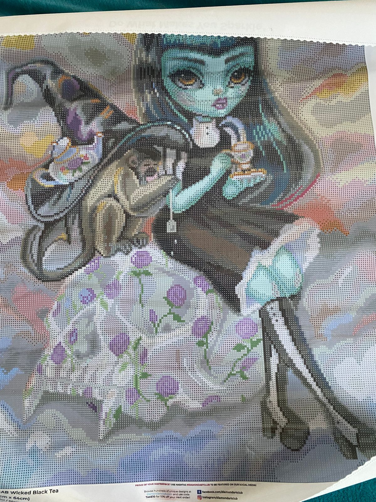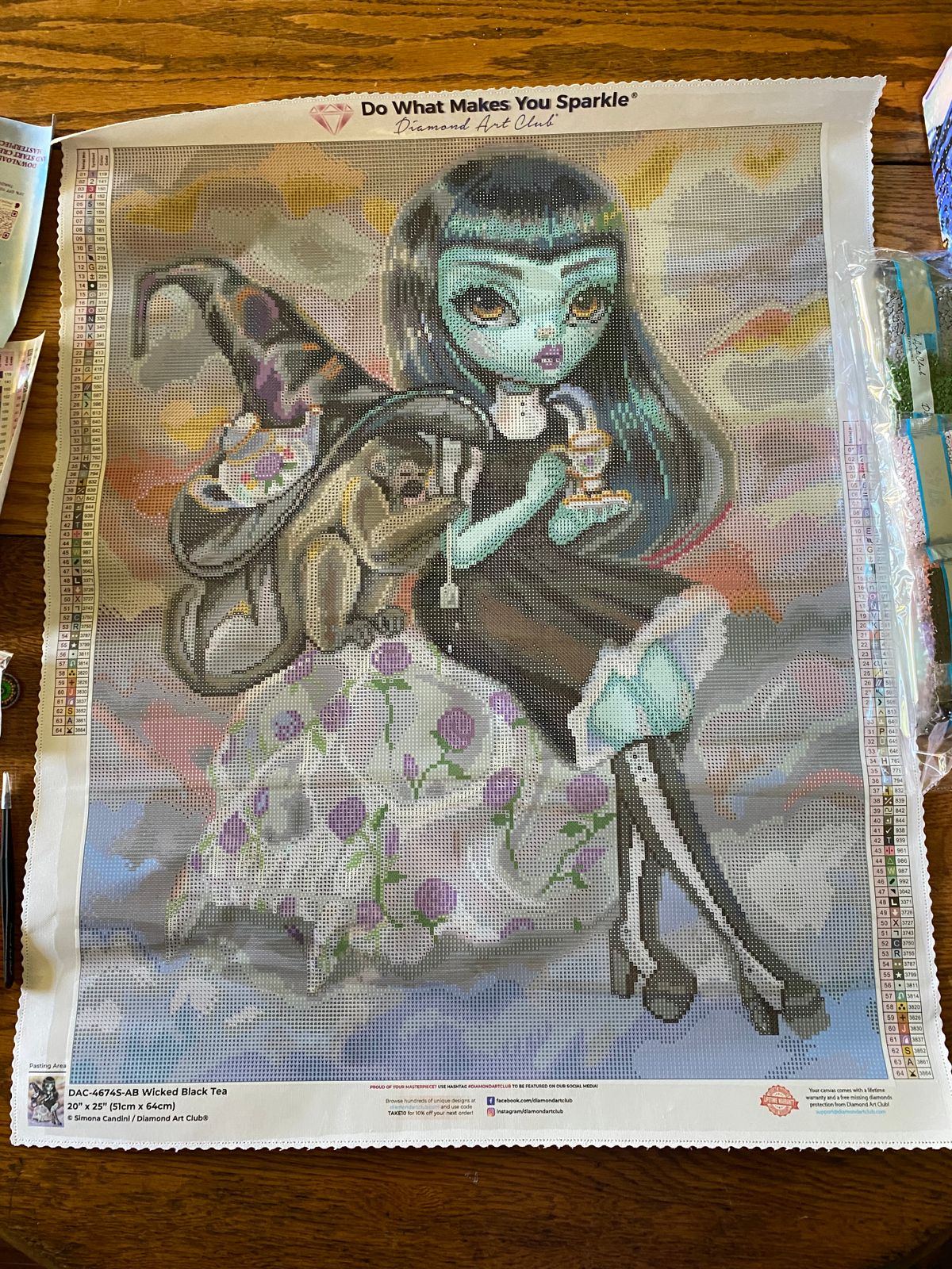 Fell in love with this after seeing it on many diamond painting channels on You Tube. Love everything about this the roses on the skull, the monkey, how beautiful the wicked witch is just can't say enough about this. Love it!