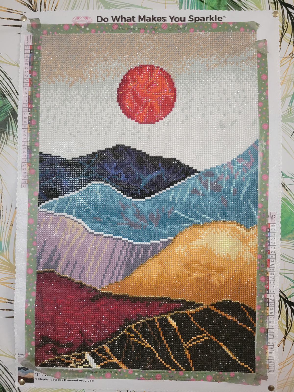 I absolutely loved working on Abstract Mountains & Sun! It turned out beautifully. I used it as a “snack” project while working on a larger canvas, and it was the perfect break. The combination of confetti and color blocking kept things interesting without being overwhelming.