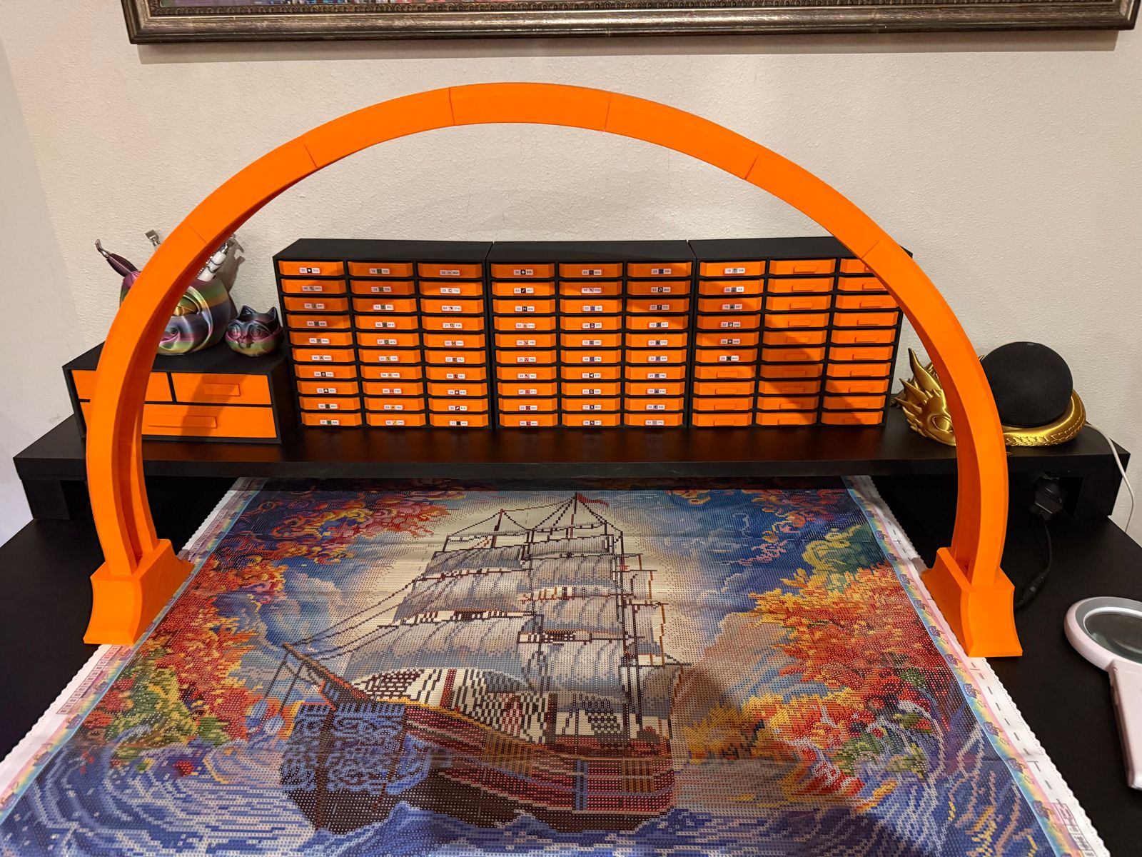 I have worked with smaller kits for so long and I am highly impressed with this one. The artwork is beautiful, the contents of the kit is impressive, the canvas is great quality, and one of the coolest features I have seen is the plastic cover sheet is graphed out and perforated so you can easily go section by section instead of having to deal with one big sheet or having to grid it out yourself. I am so excited to start this!