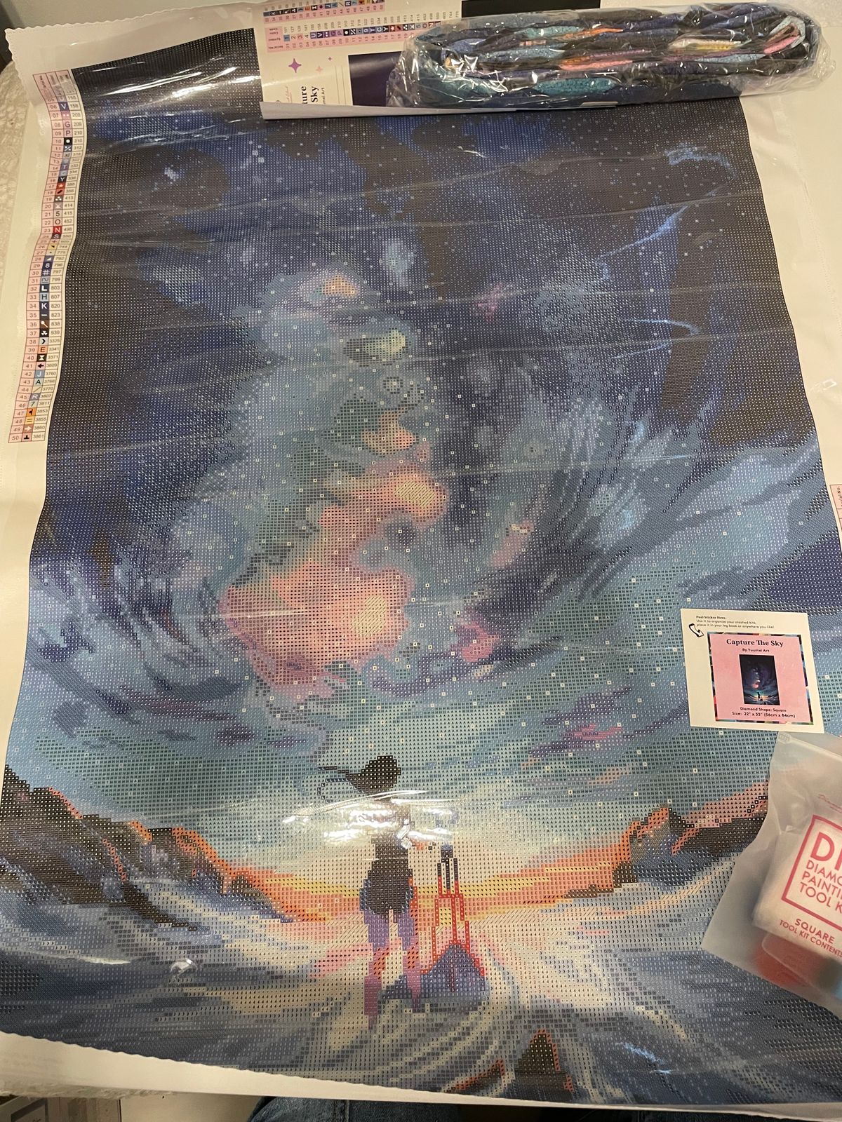 This painting is special to me because it is my first purchase from Diamond Art Club. The colors are beautiful, the image itself is phenomenal. The sky has a bit of confetti in it but I had a lot of fun working on it.