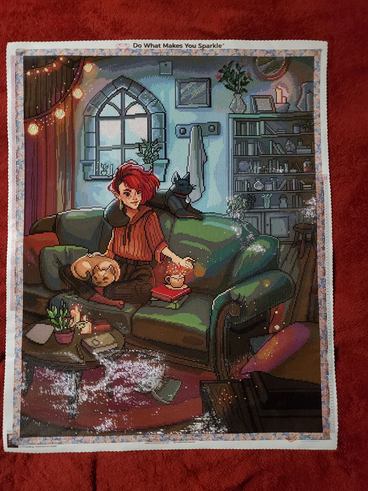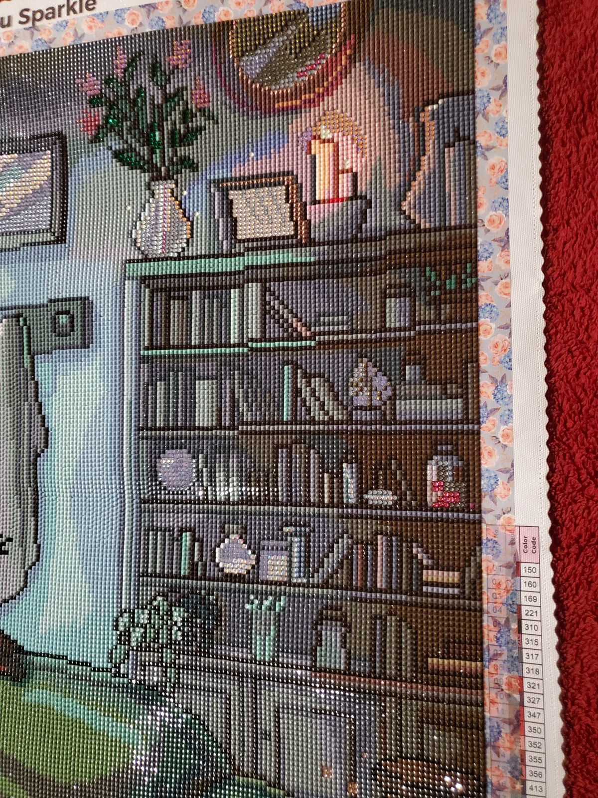 Absolutely love the vibe of this painting. All of the knickknacks and the colors are fun to diamond paint. I love the matte diamond drills in the lights.