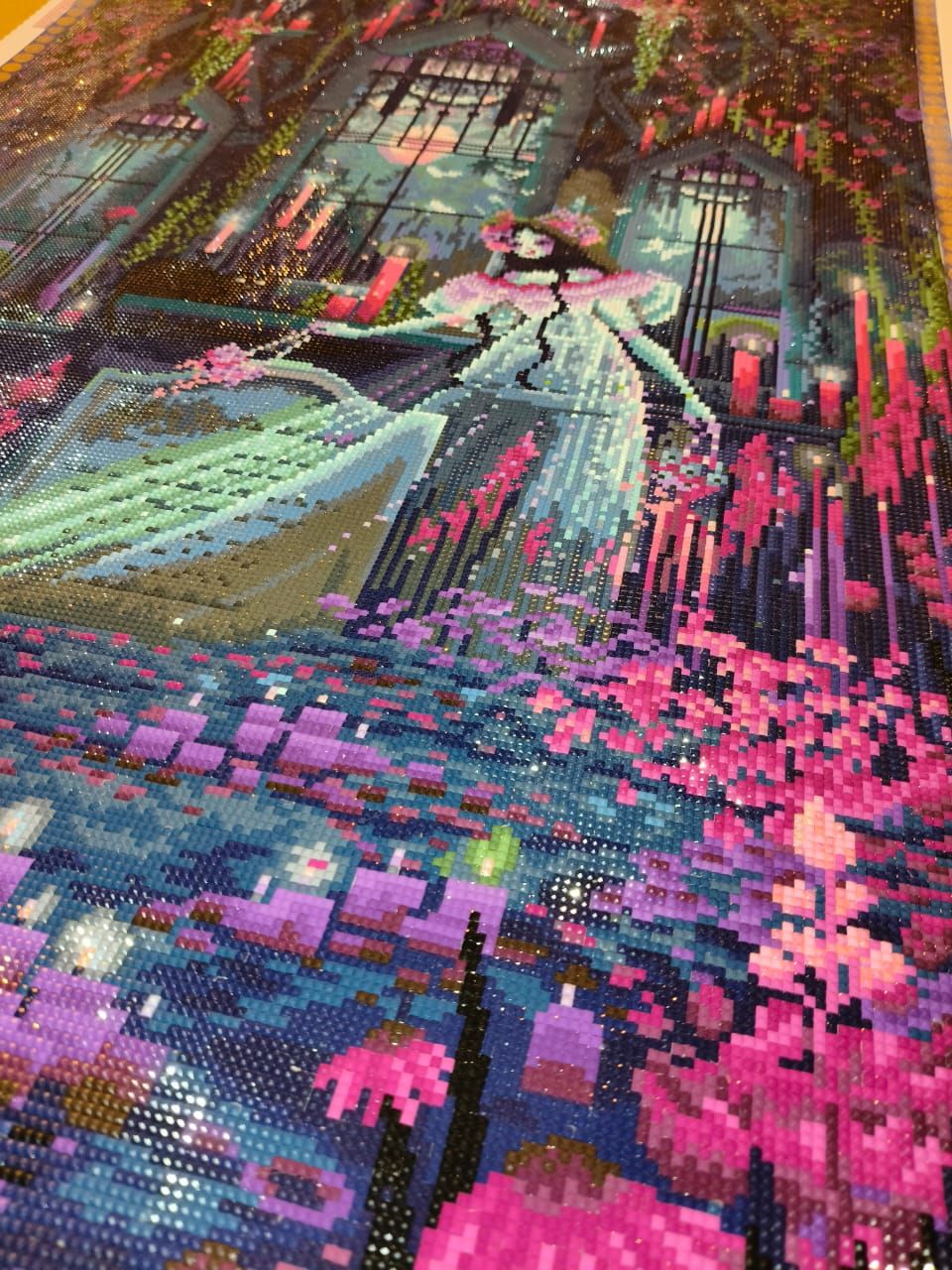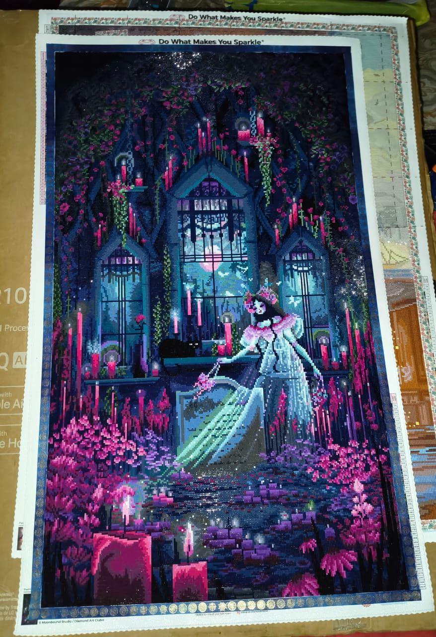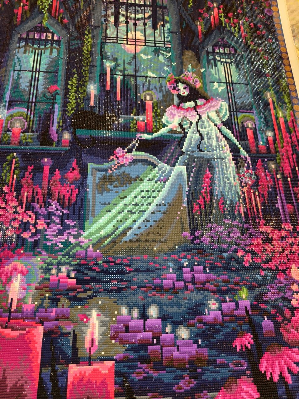 This diamond art painting is an otherworldly enchantment brought to life. Each shimmering facet blooms like a spell in motion — ethereal pinks and twilight blues weaving a dreamscape that feels both haunting and serene. The ghostly lady at its center glows with a kind of celestial grace. Every detail feels lovingly placed, turning the entire piece into a radiant portal of fantasy and wonder. Truly a breathtaking, mystical masterpiece.
