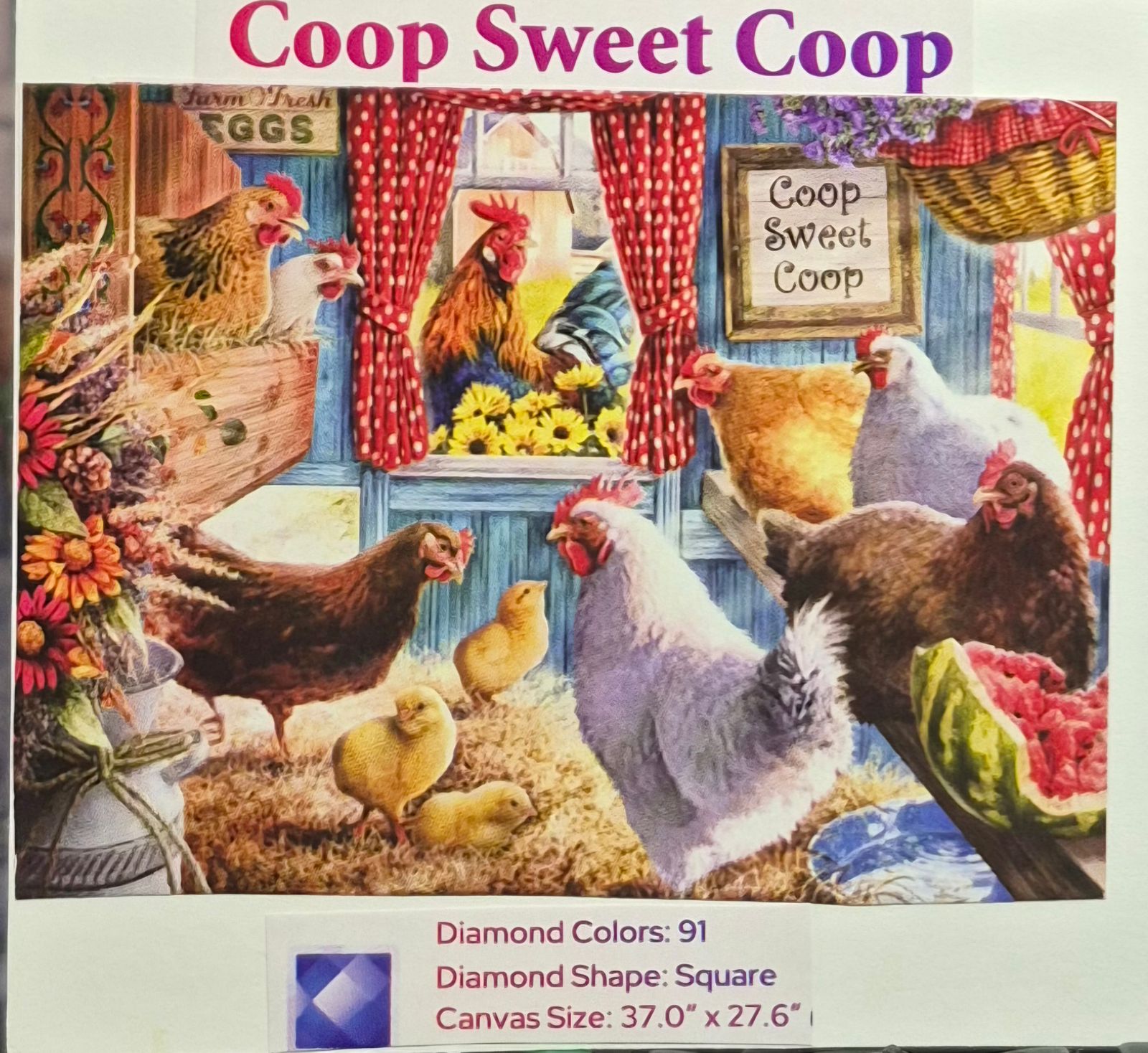 Diamond Painting Coop Sweet Coop 37" x 27.6" (94cm x 70cm) / Square with 91 Colors including 2 ABs and 3 Fairy Dust Diamonds / 105,937