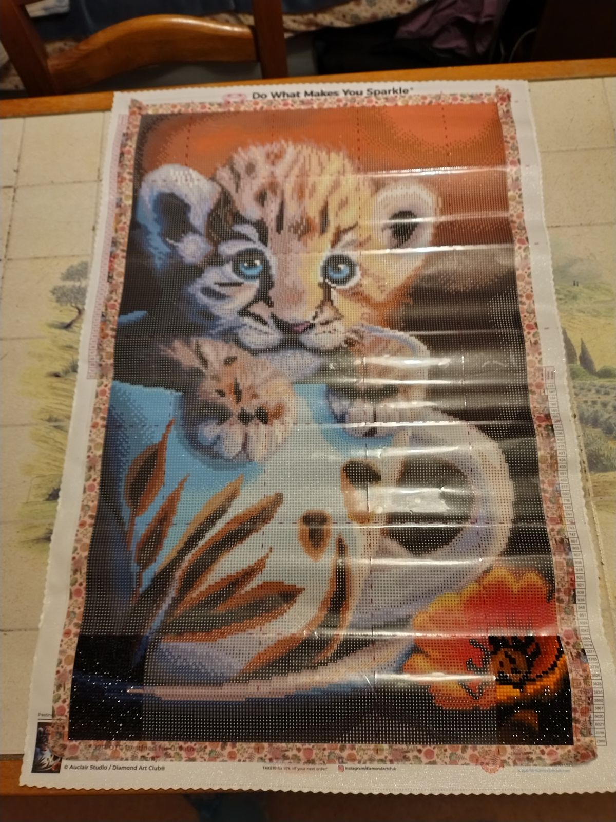 Great painting. A lot of color blocking. If you don't like brown like me, it's a bit overwhelming but I'll push through cause he's so cute. I started this one with my mom, we each started on a corner. Very good quality.