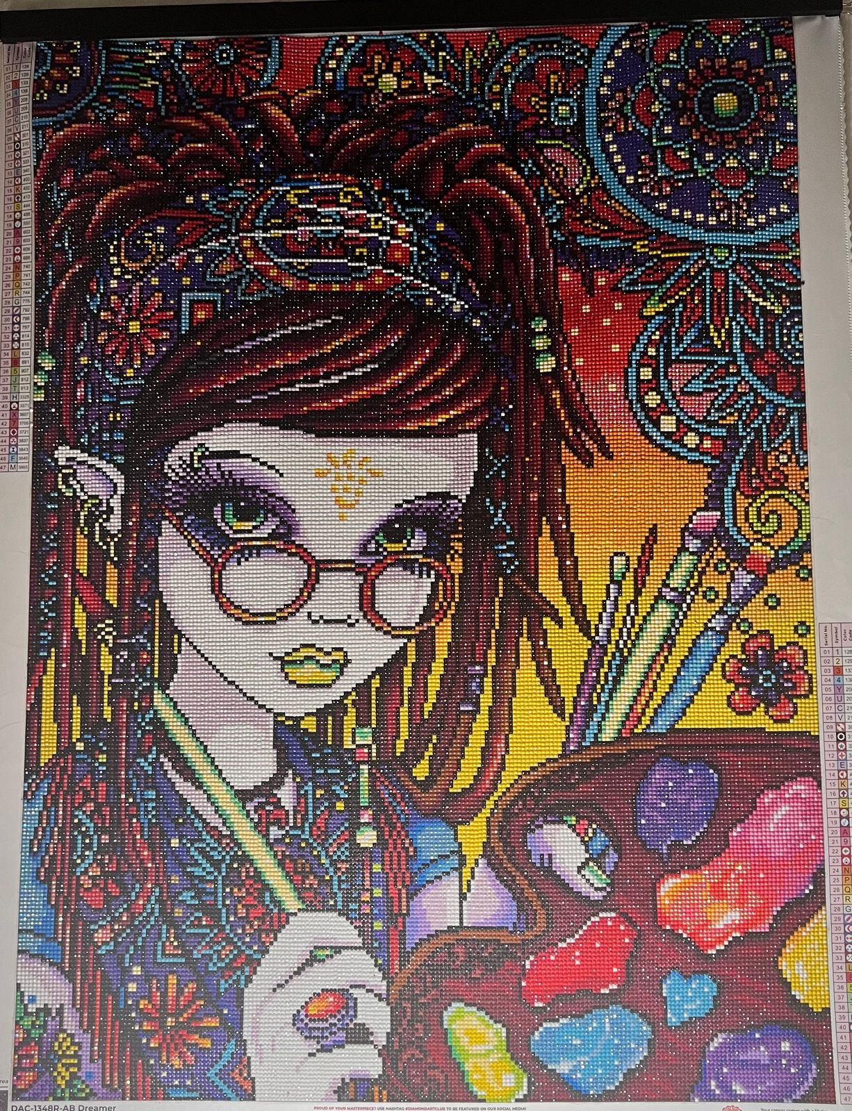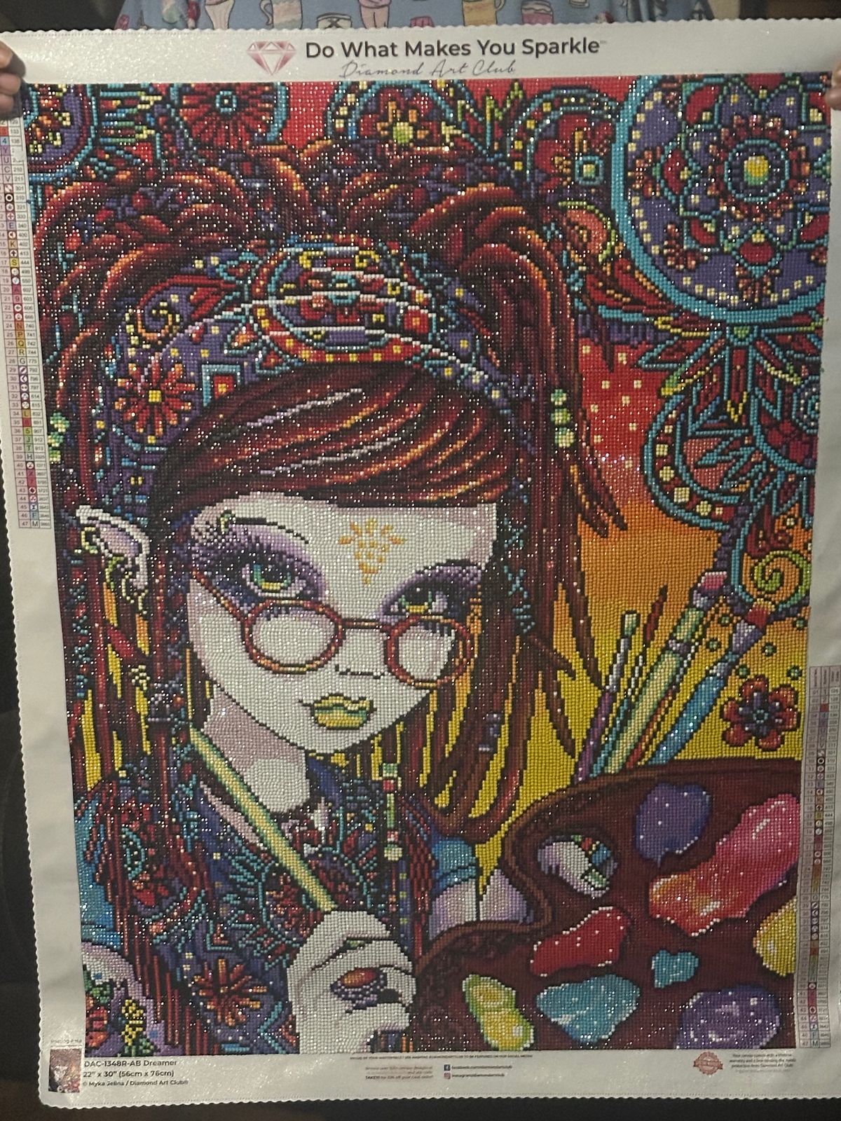 I didn't realize there was glow in the dark drills. It was a nice surprise. I enjoyed working on all three colors and gave her a lil "mole" above her lip. Idk why. Lol