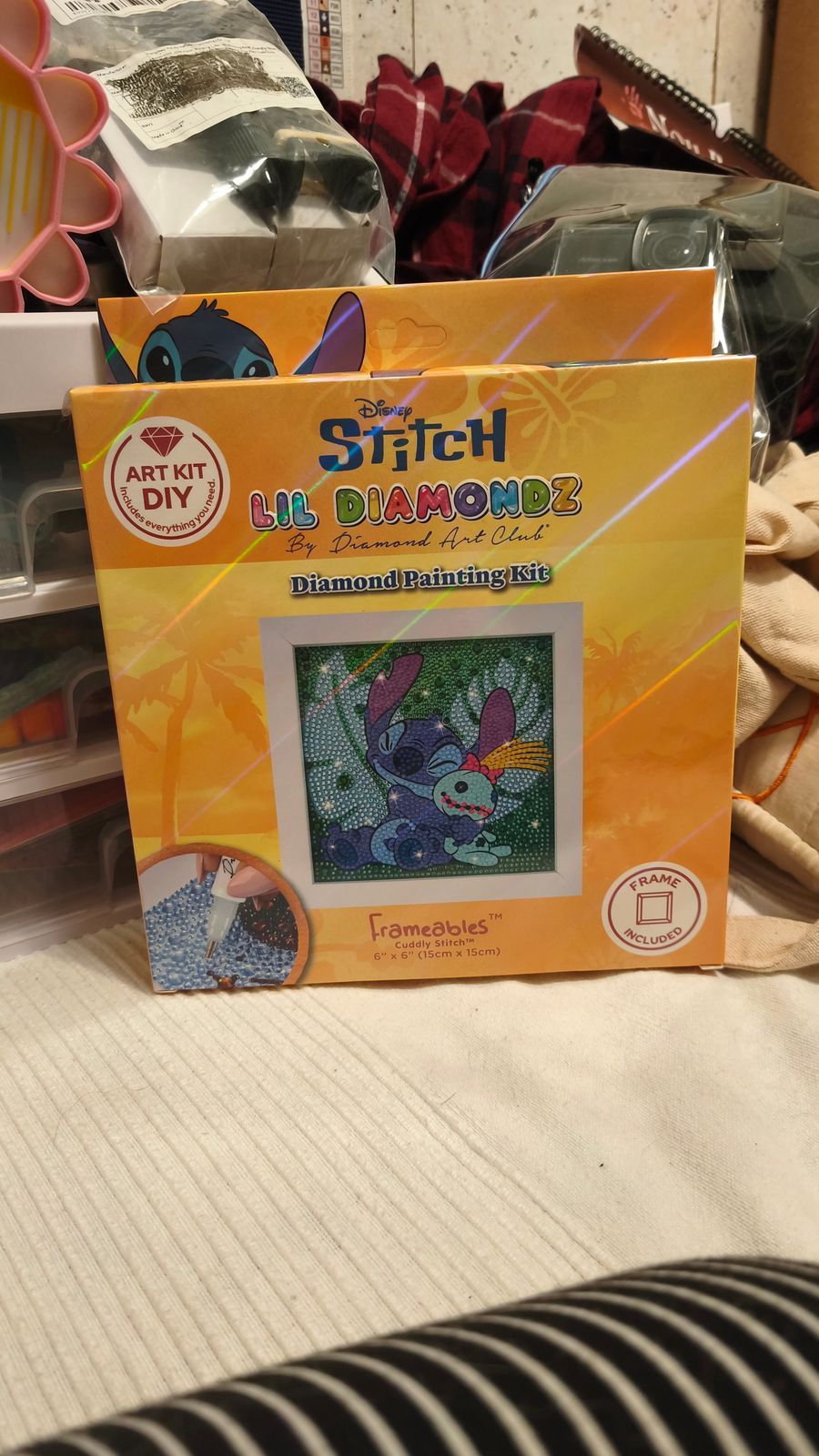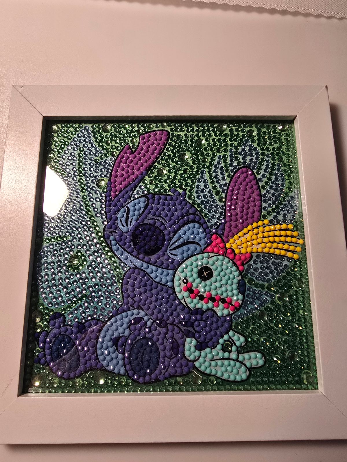 Show off your favorite blue alien with this sparkling diamond painting and frame. Capture the heartwarming love of this mischievous character in every shimmering detail.
