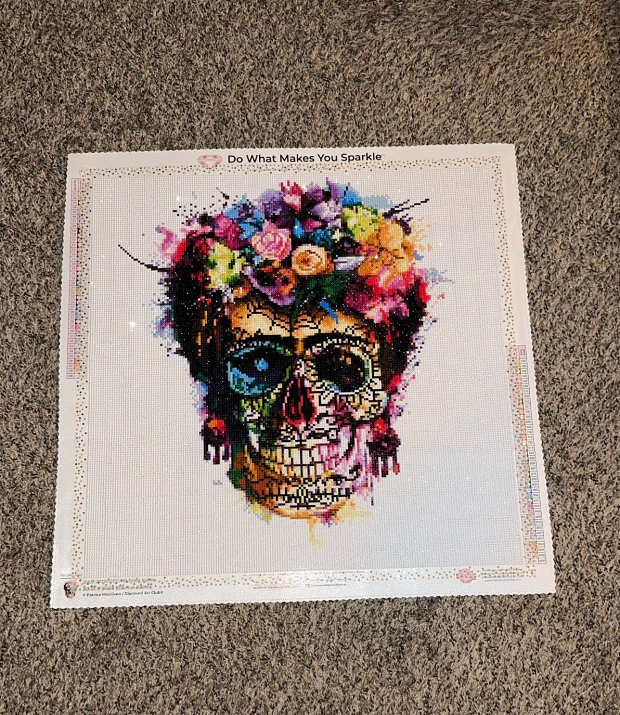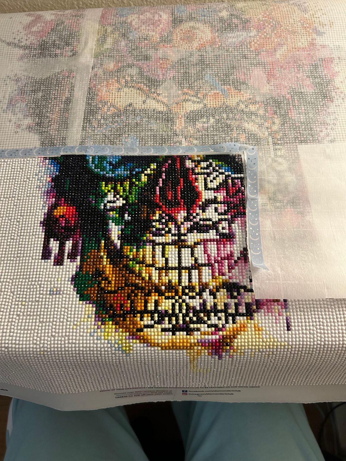 I have always loved Frida and skulls, so I needed this one! It is my current WIP. A lot of white on this one.