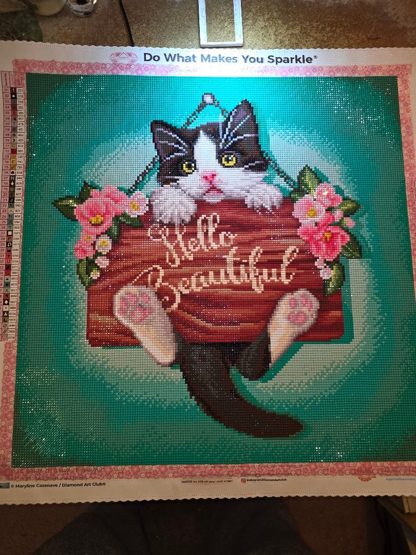 I got this painting in honor of a cat we lost last year. There was enough drills left over that I was able to change the eyes from blue to yellow to look more like him.