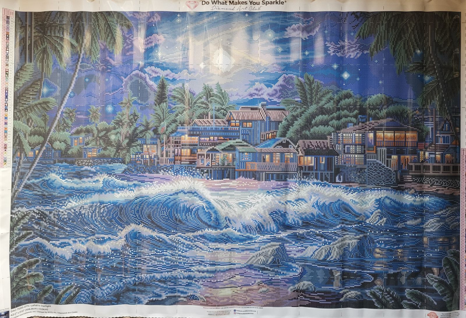 I can't wait to work on this gorgeous painting! This was the Lahaina I saw several years ago before the horrible fire that destroyed the town. It will be absolutely beautiful when I get it done and up on my wall, which will join Eternal Embrace. I have four of Christian Riese Lassen's diamond art club paintings of which this one is the second.