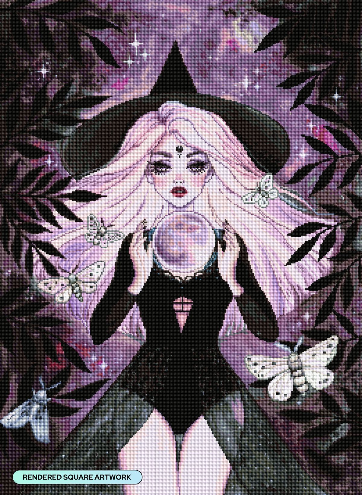 Gaze through the shimmering lilac mist into a luminous crystal ball. The possibilities are endless when magic draws in stardust, secrets from the surrounding cosmos, and bewitching moths from the trees.
