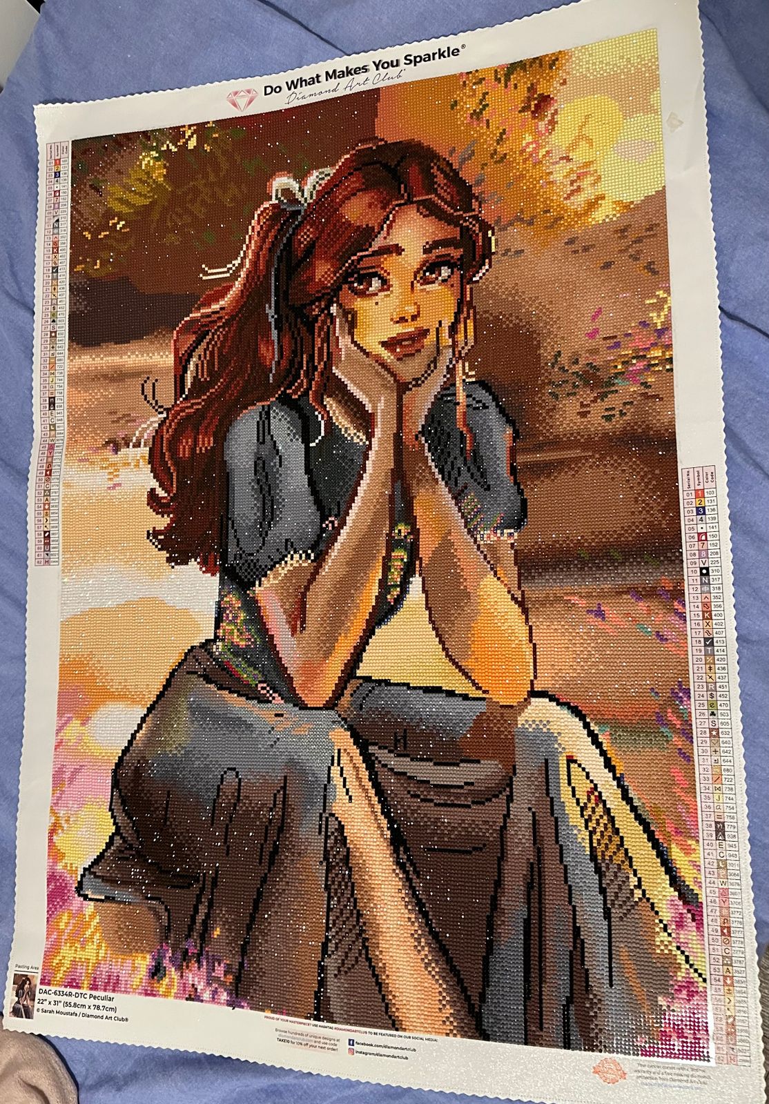 This turned out so beautiful! The round drills really make this one sparkle. Despite the gorgeous outcome, there were some issues worth mentioning: there was an issue with two “C” symbols in very verrry similar colors, and the “P” color had quite a bit of trash and some dye lot variation. Still enjoyed the experience and end result! I absolutely love Sarah Moustafa’s work,
