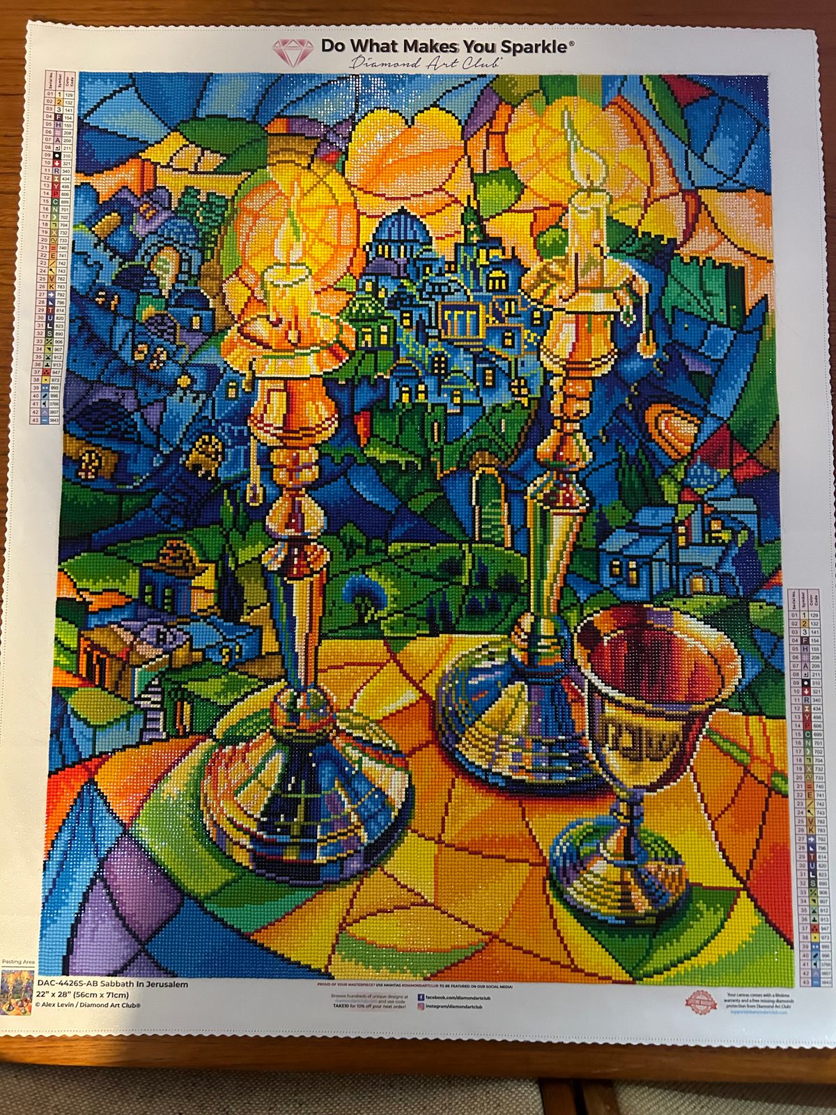 I started on the diamond art journey last August. This was my first large project. Made it for my daughter and son-in-law, the latter who lived in Jerusalem for many years. Just got it back from the framers and very happy with the way it came out. Now working on Balloons Over the Bay. I’m so hooked