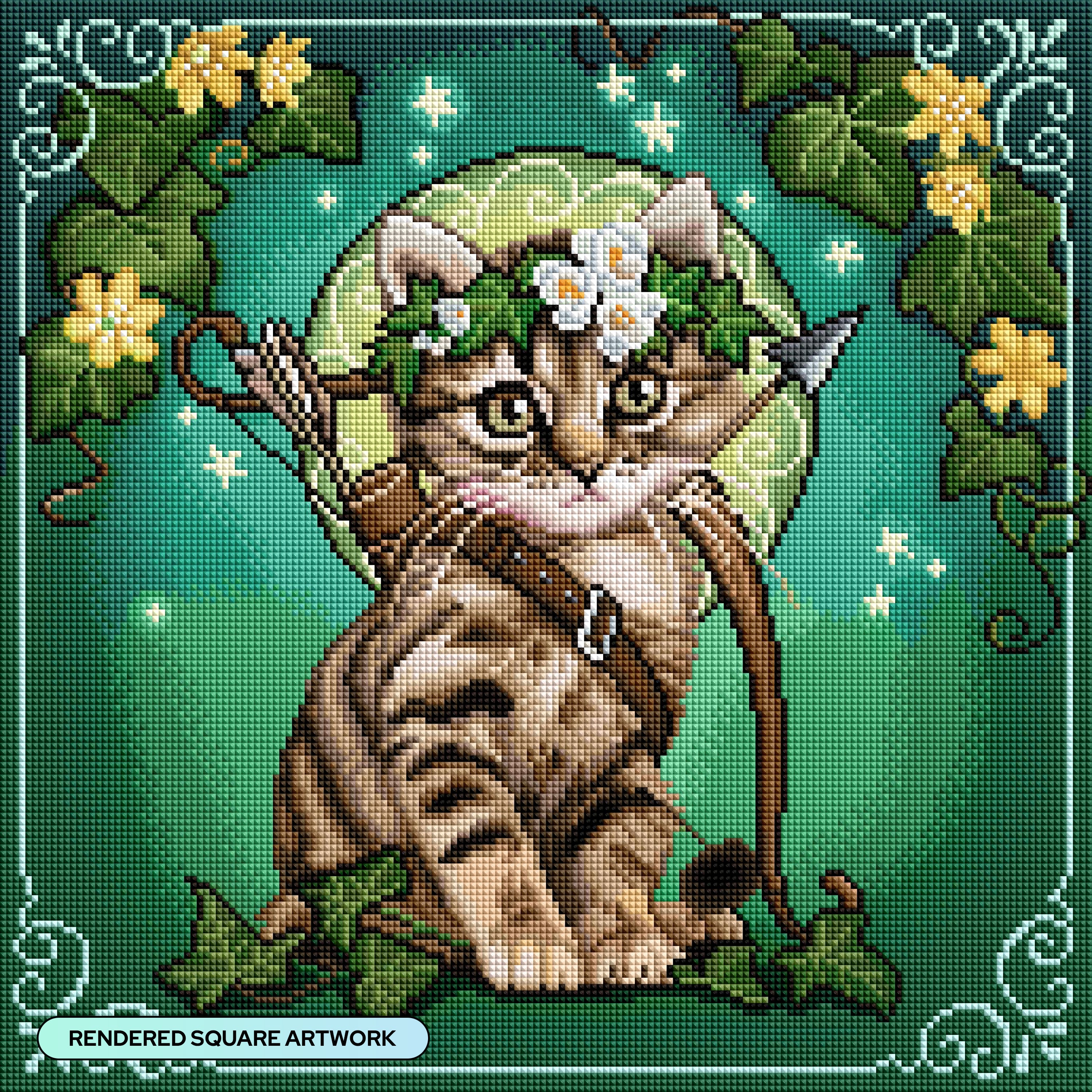 Crown your tiny archer with ivy and the glow of starlit blooms. As its golden eyes meet yours, dreams of a distant quest are sparked and the cosmic hunt begins.